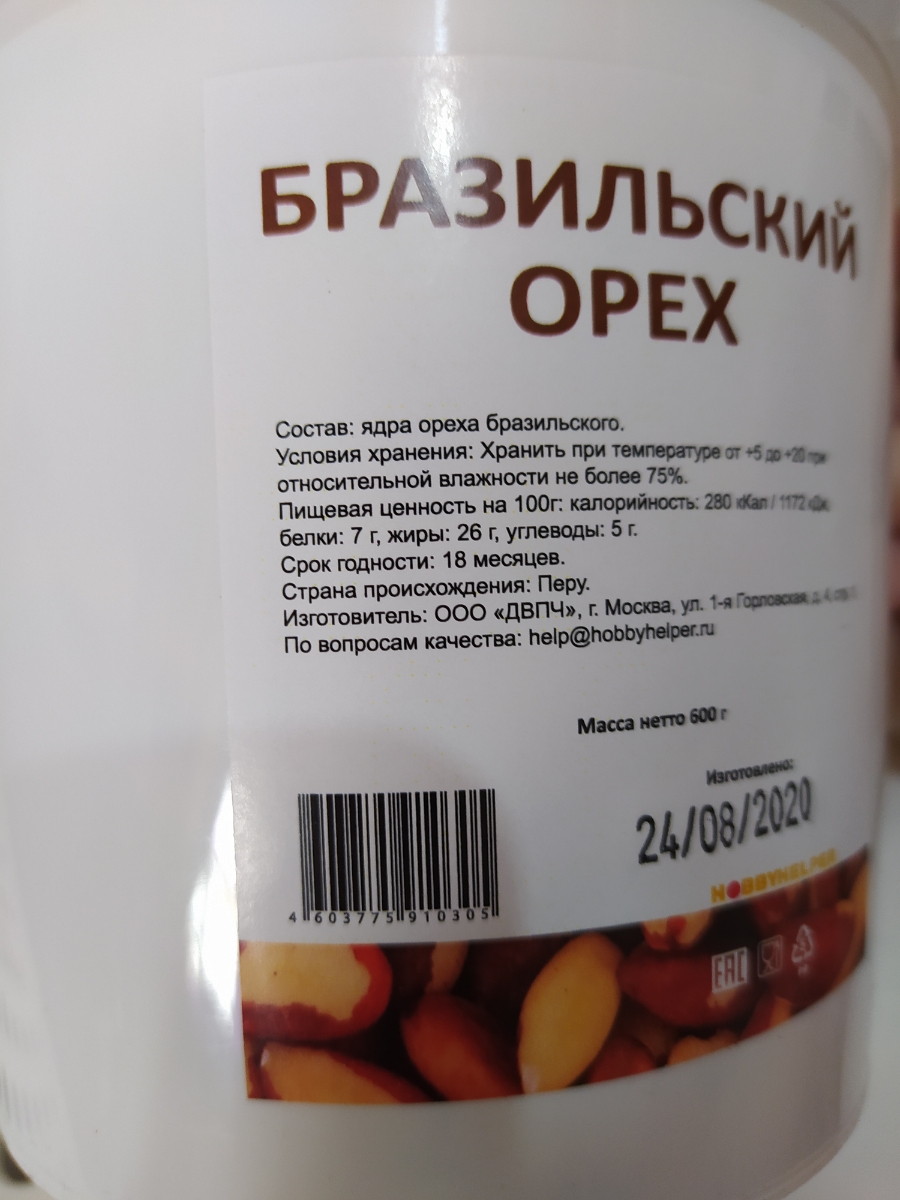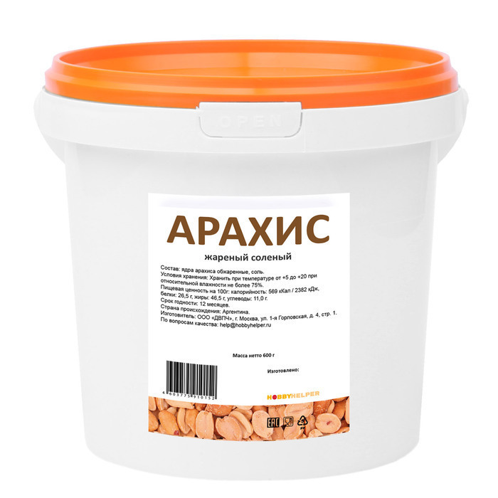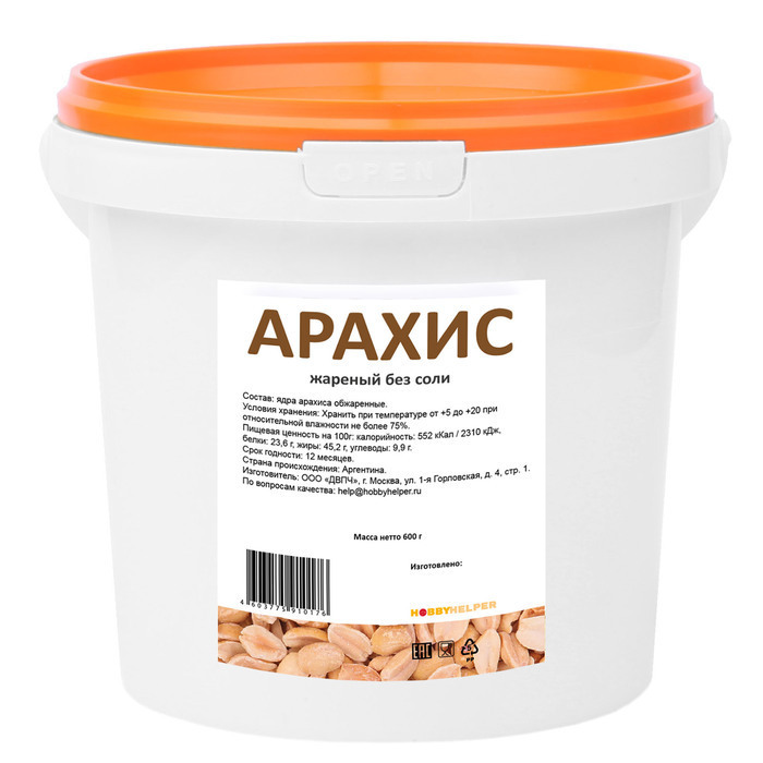 Арахис жареный без соли HOBBYHELPER в ведре (600г)