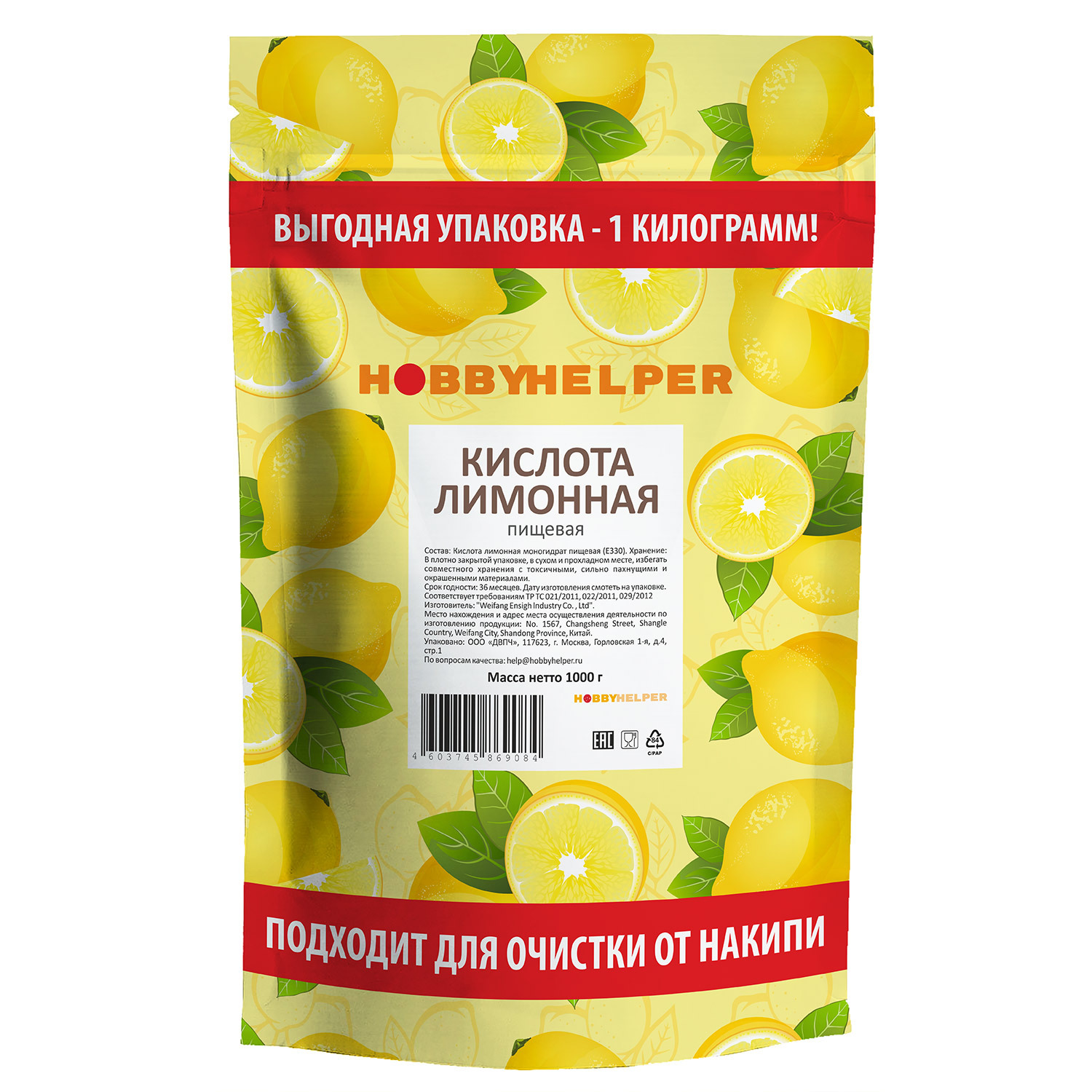 Лимонная кислота пищевая HOBBYHELPER 1 кг
