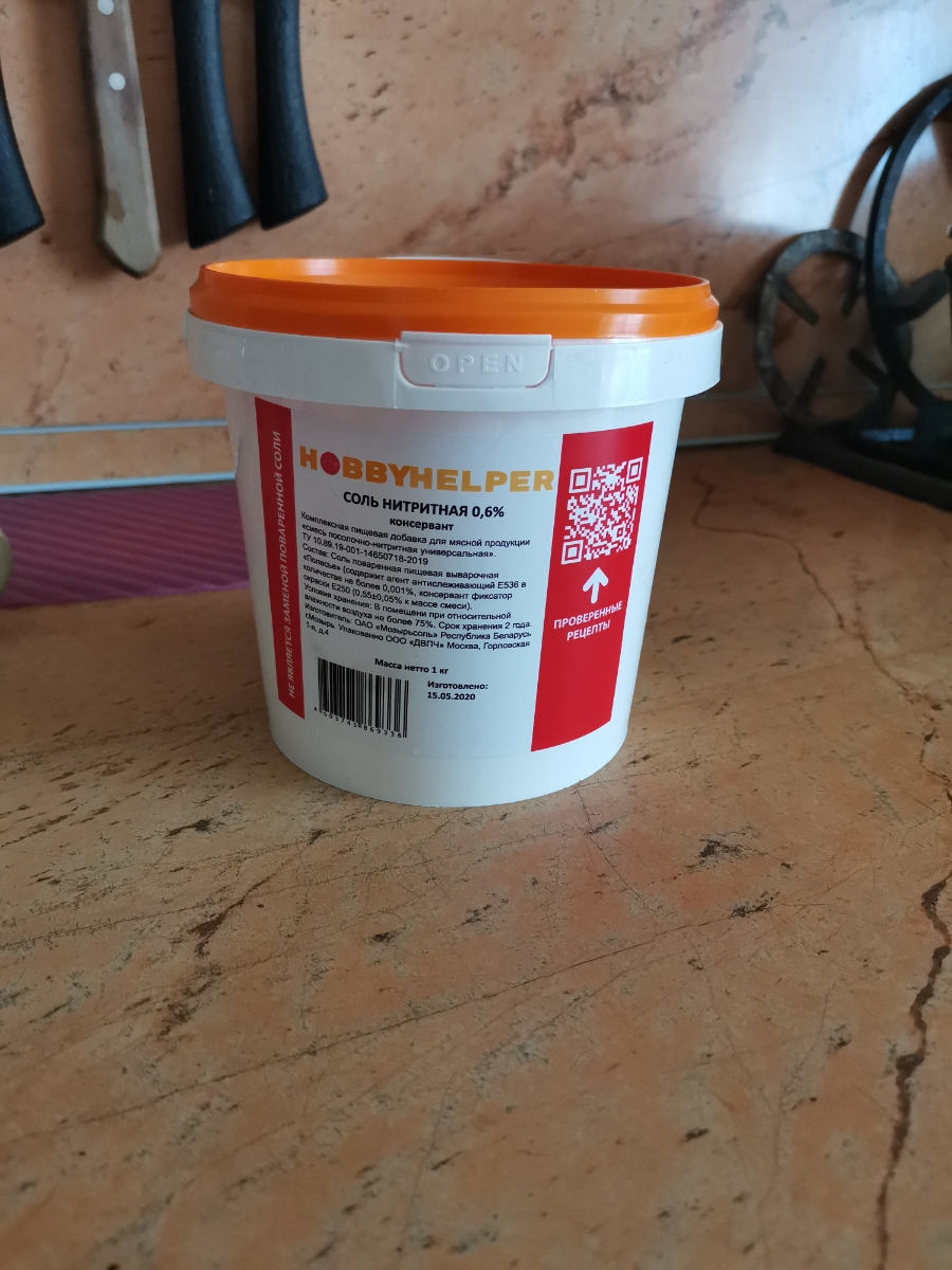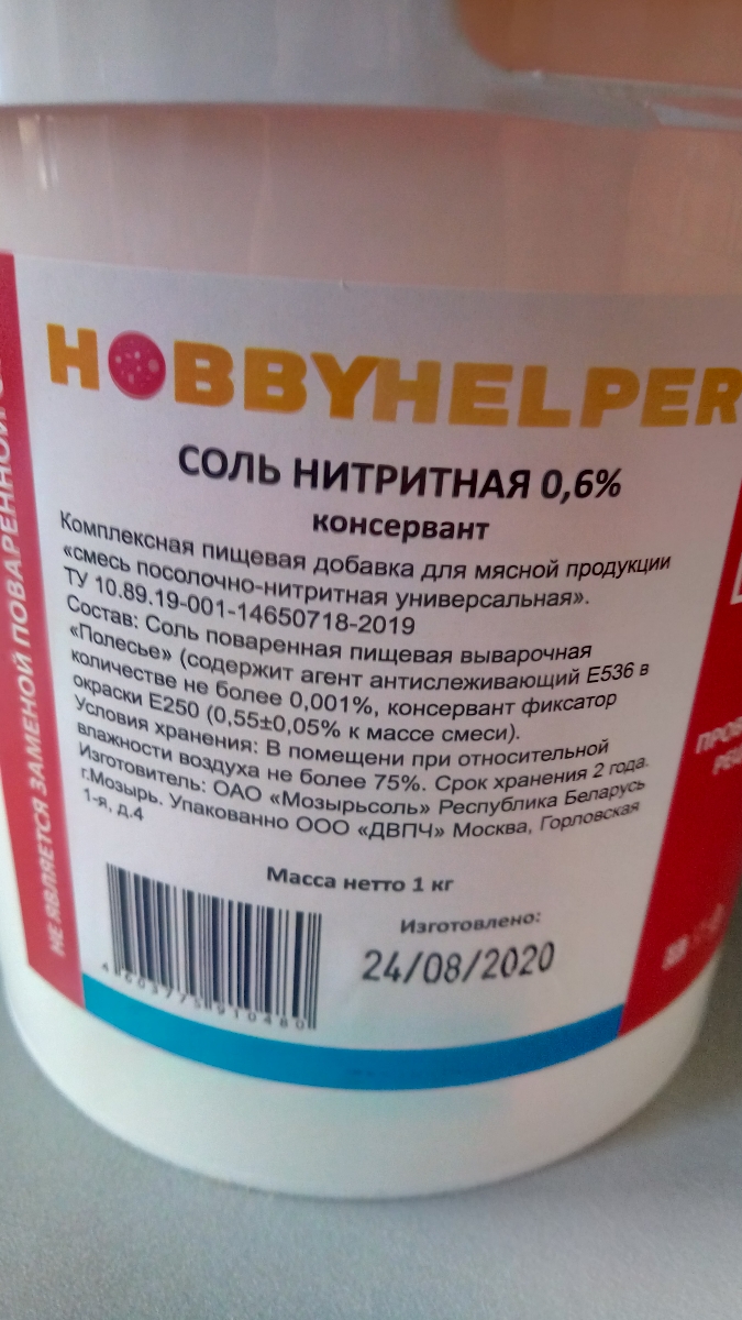 Соль нитритная для колбас HOBBYHELPER 1 кг (консервант)