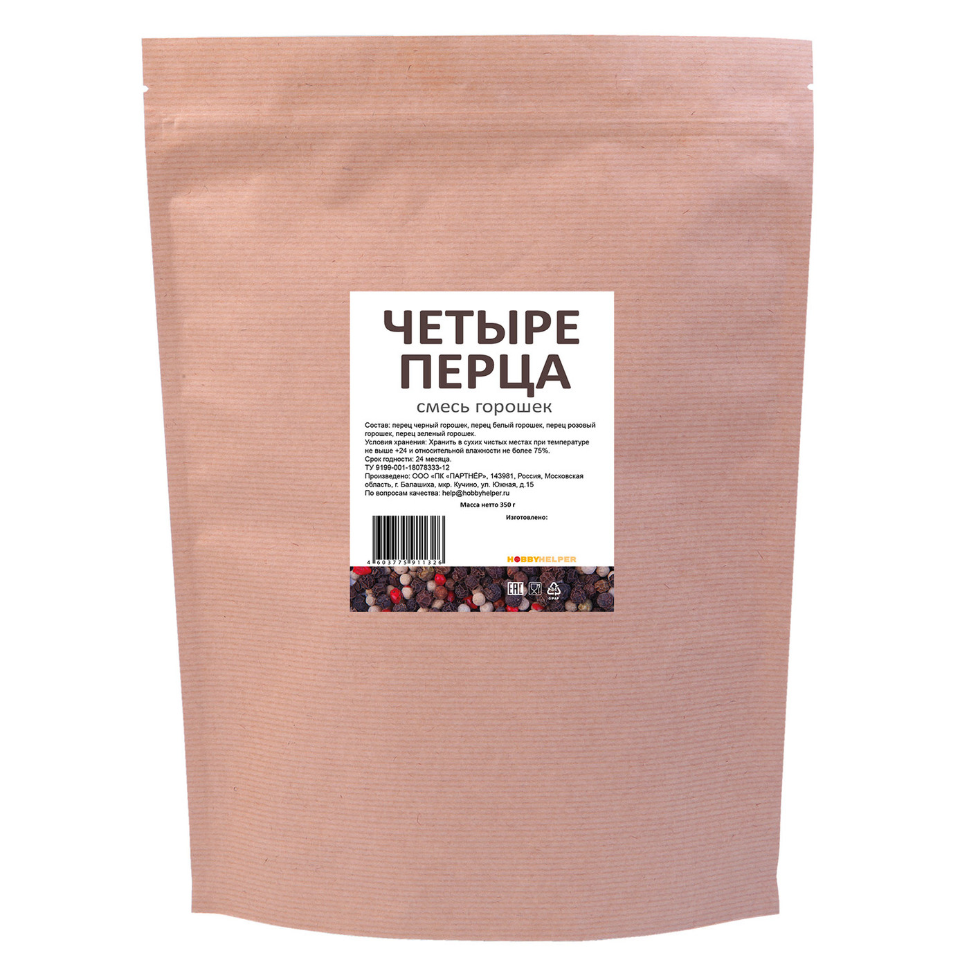Смесь 4 перца горошком HOBBYHELPER дой пак (350 г)