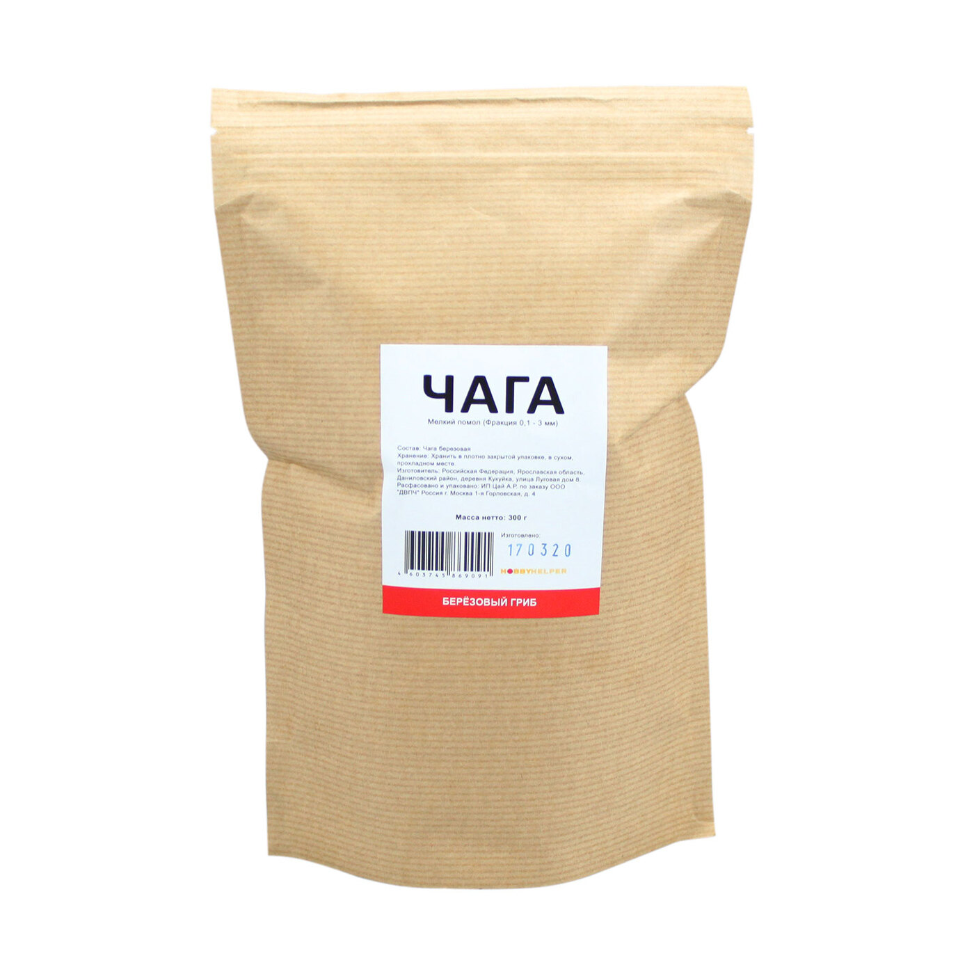 Чага Березовый гриб HOBBYHELPER дой пак (300 г)