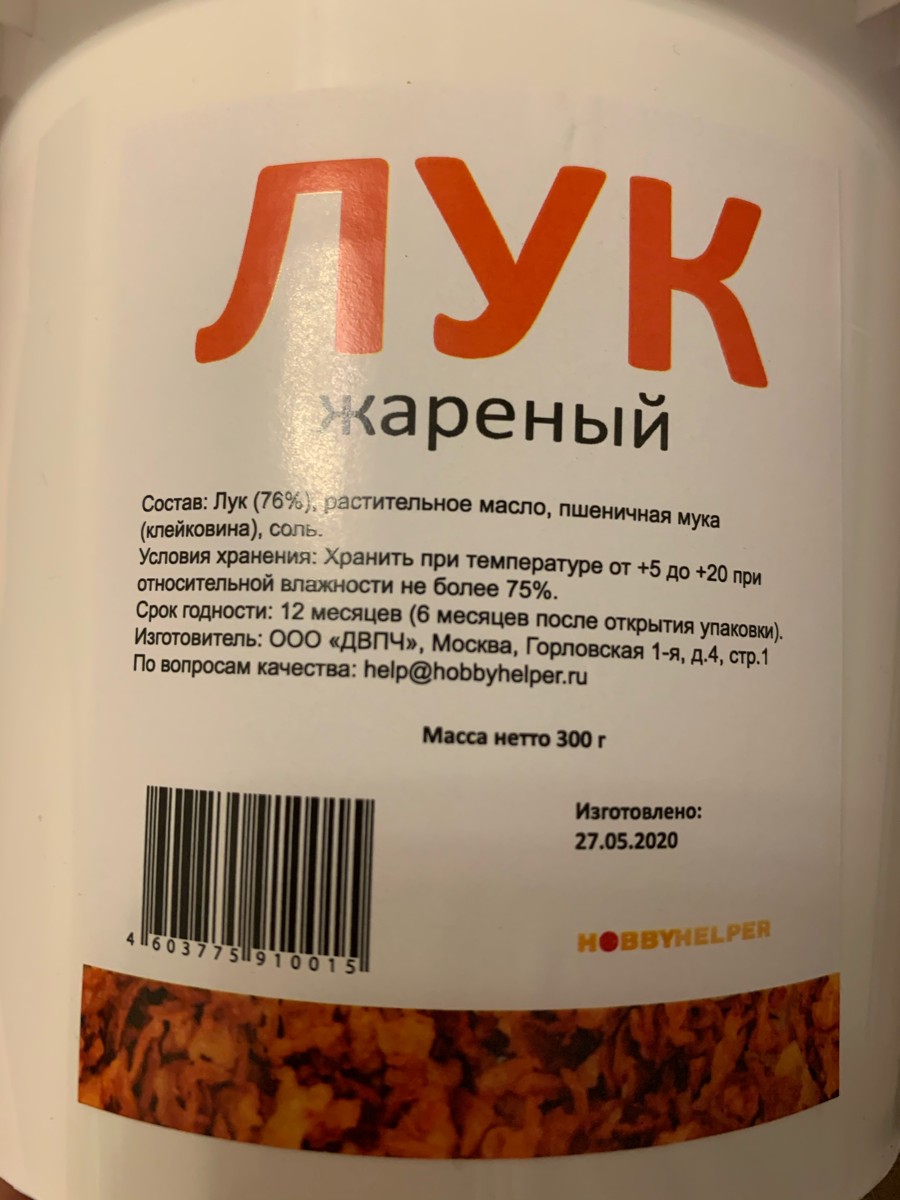 Лук жареный хрустящий HOBBYHELPER в ведре (300 г)