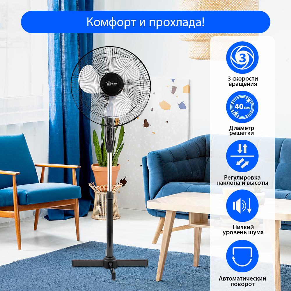 Напольный вентилятор Home Element HE-FN1205/вентилятор напольный 50Вт, черный