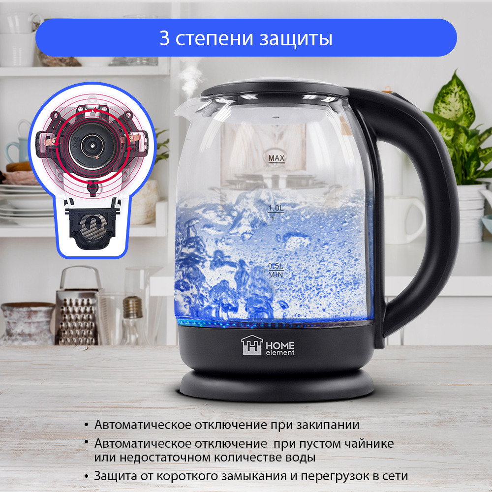 Чайник с подсветкой HOME ELEMENT HE-KT2301 1800Вт 2,0л стеклянный
