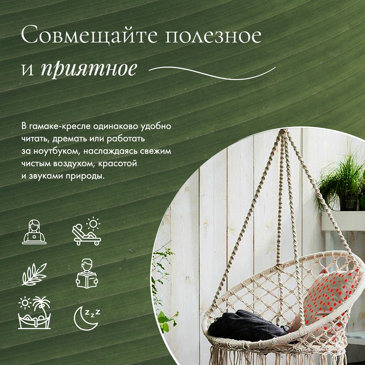 Кресло гамак, подвесные качели с кисточками, садовые качели, Homium