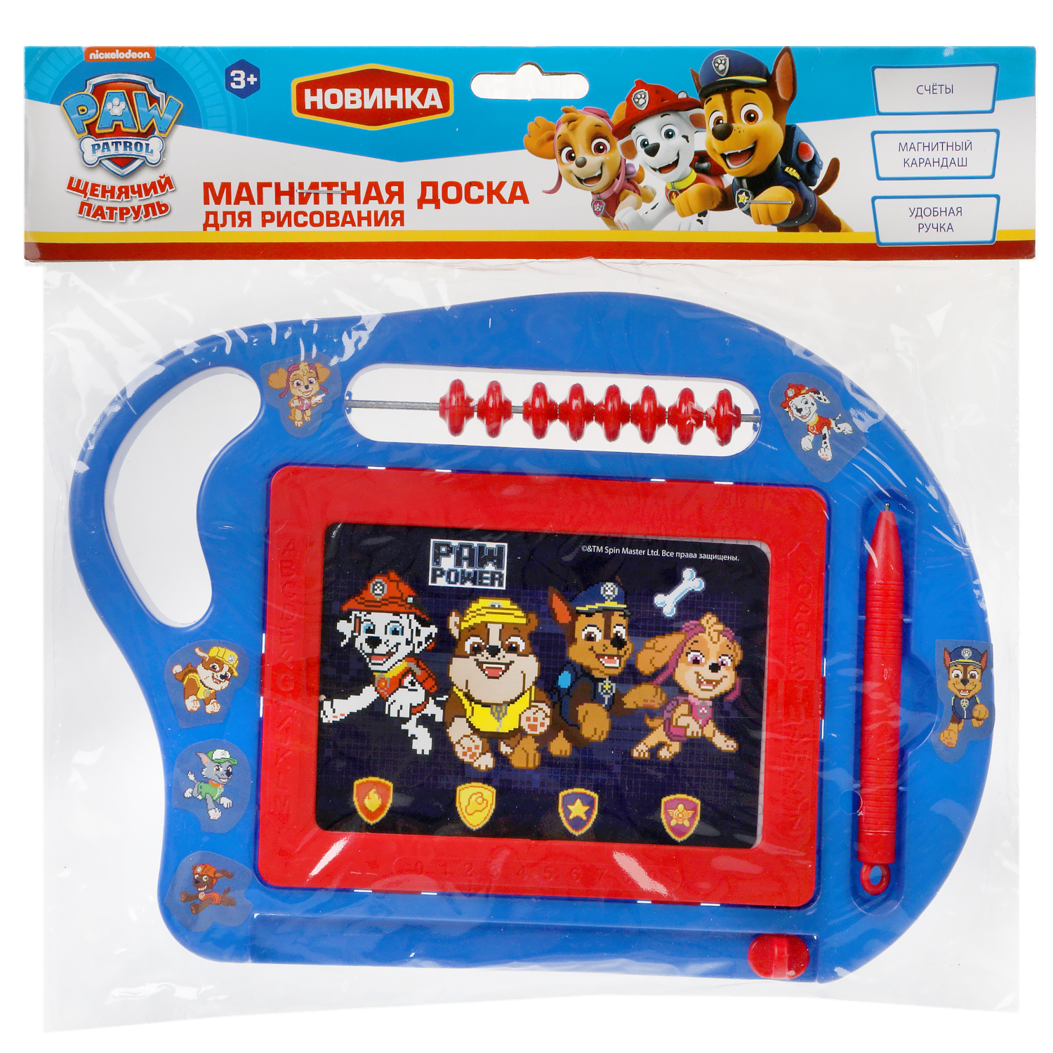 Доска для рисования Играем вместе Щенячий патруль магнитная, счеты