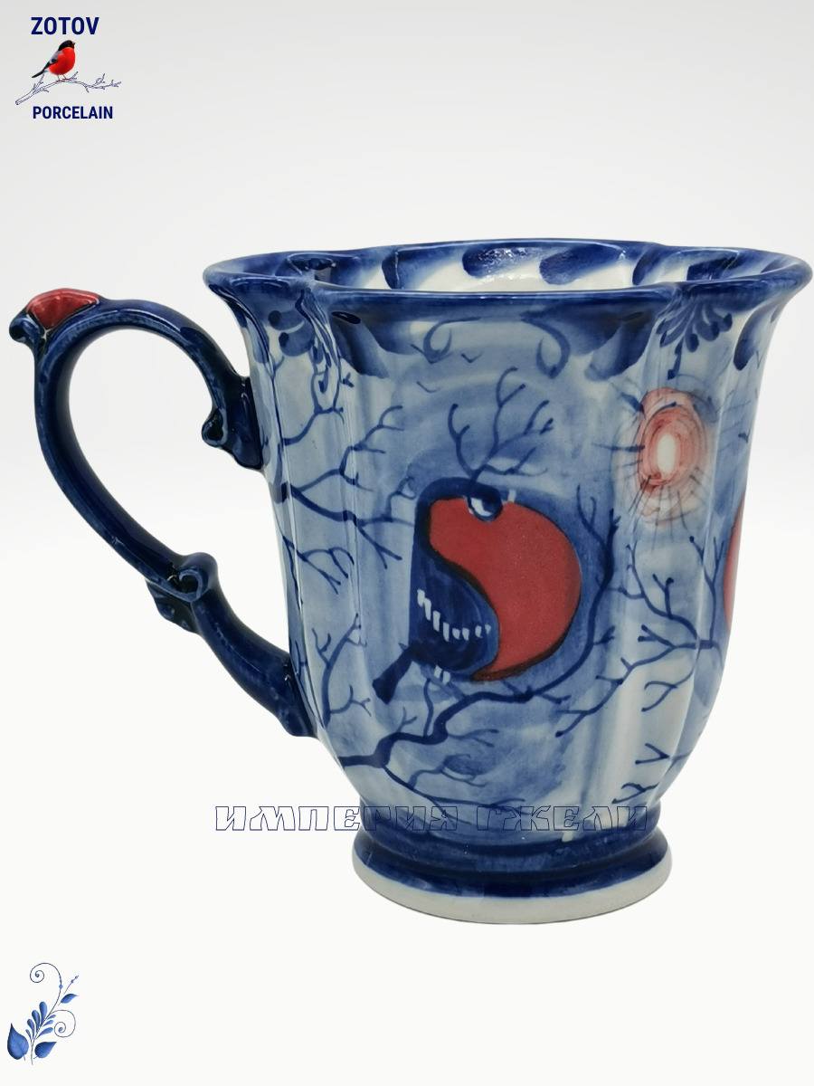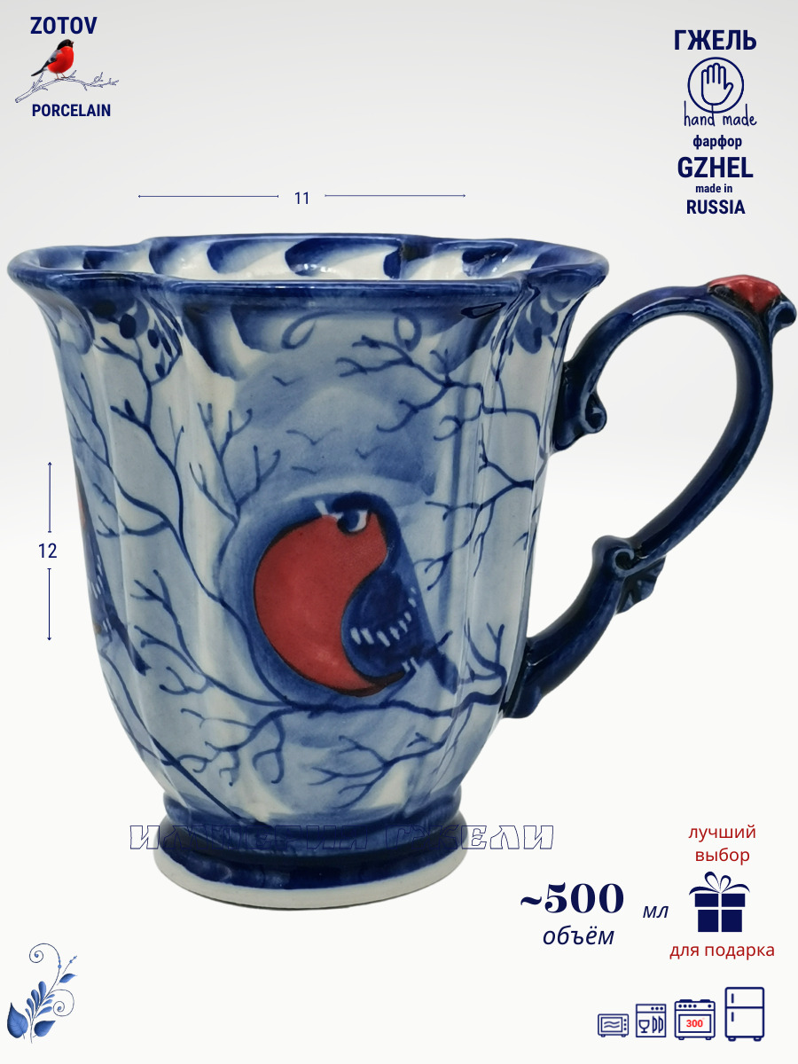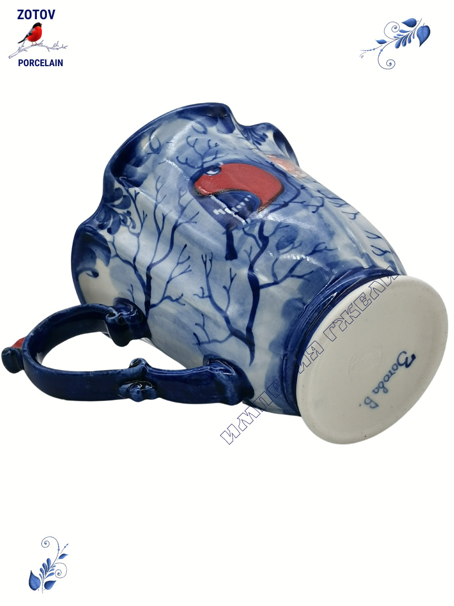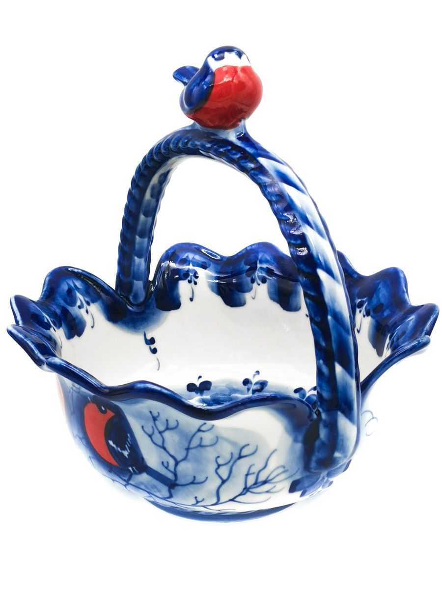 Корзинка "Снегири" (ф.Воробей)20х17см. Гжель. Ручная работа, авторская роспись