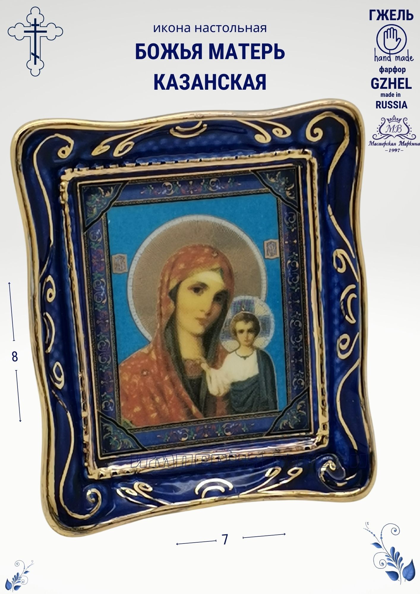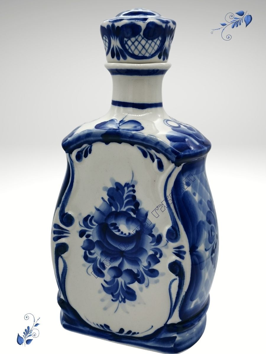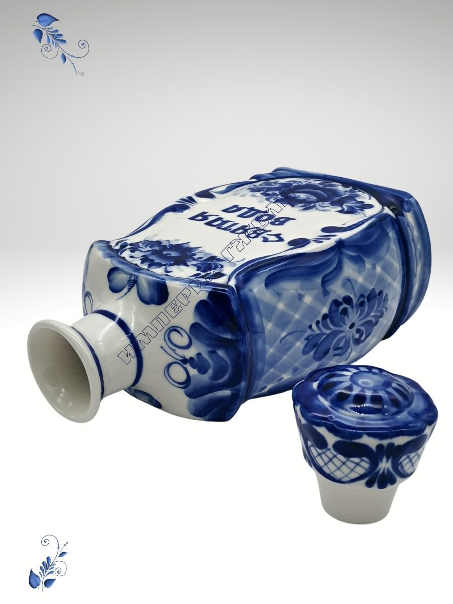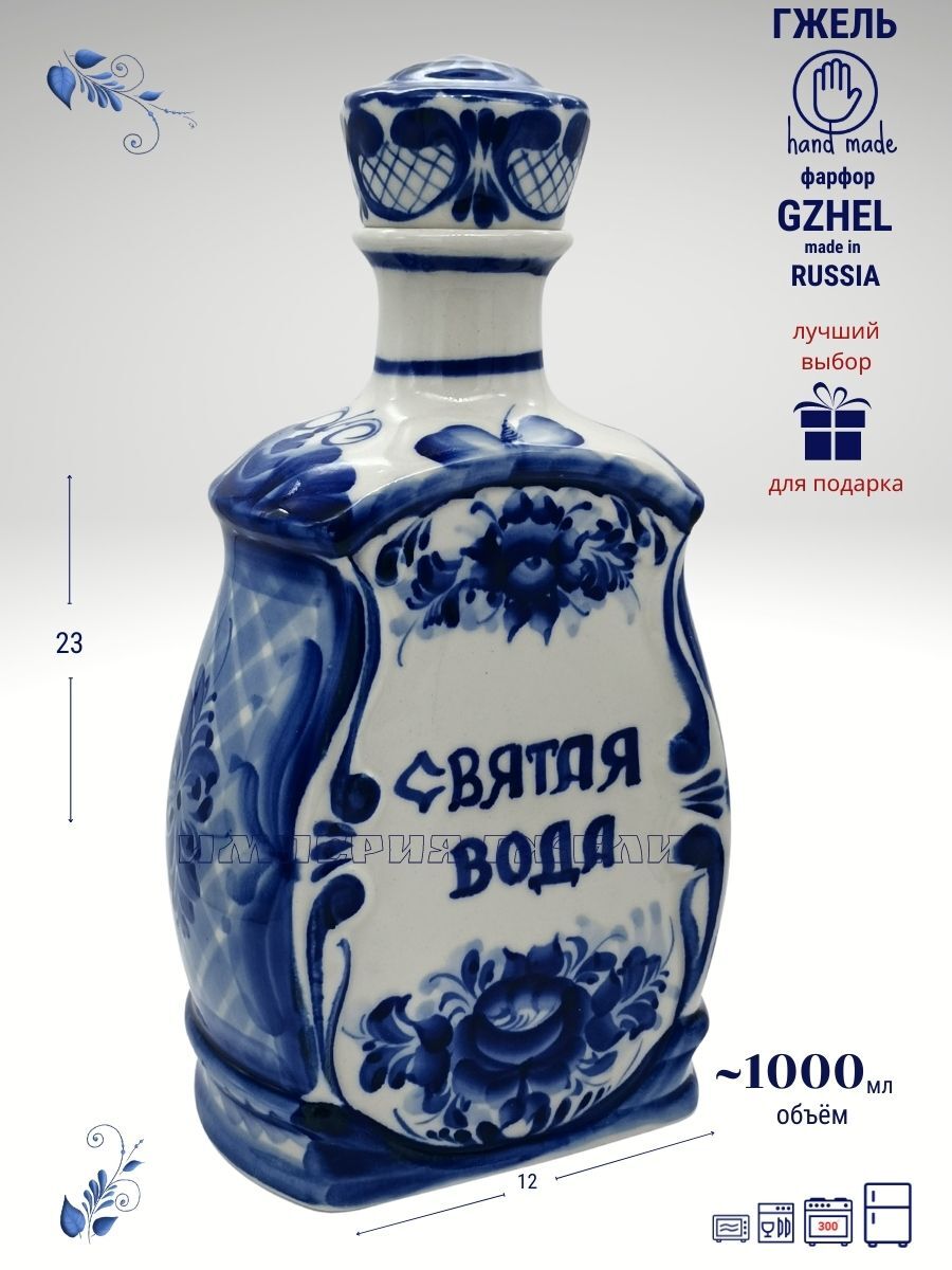 Штоф Святая вода. Размер 23х12х8см, Объём 1000мл. Гжельский фарфор, авторская ручная роспись