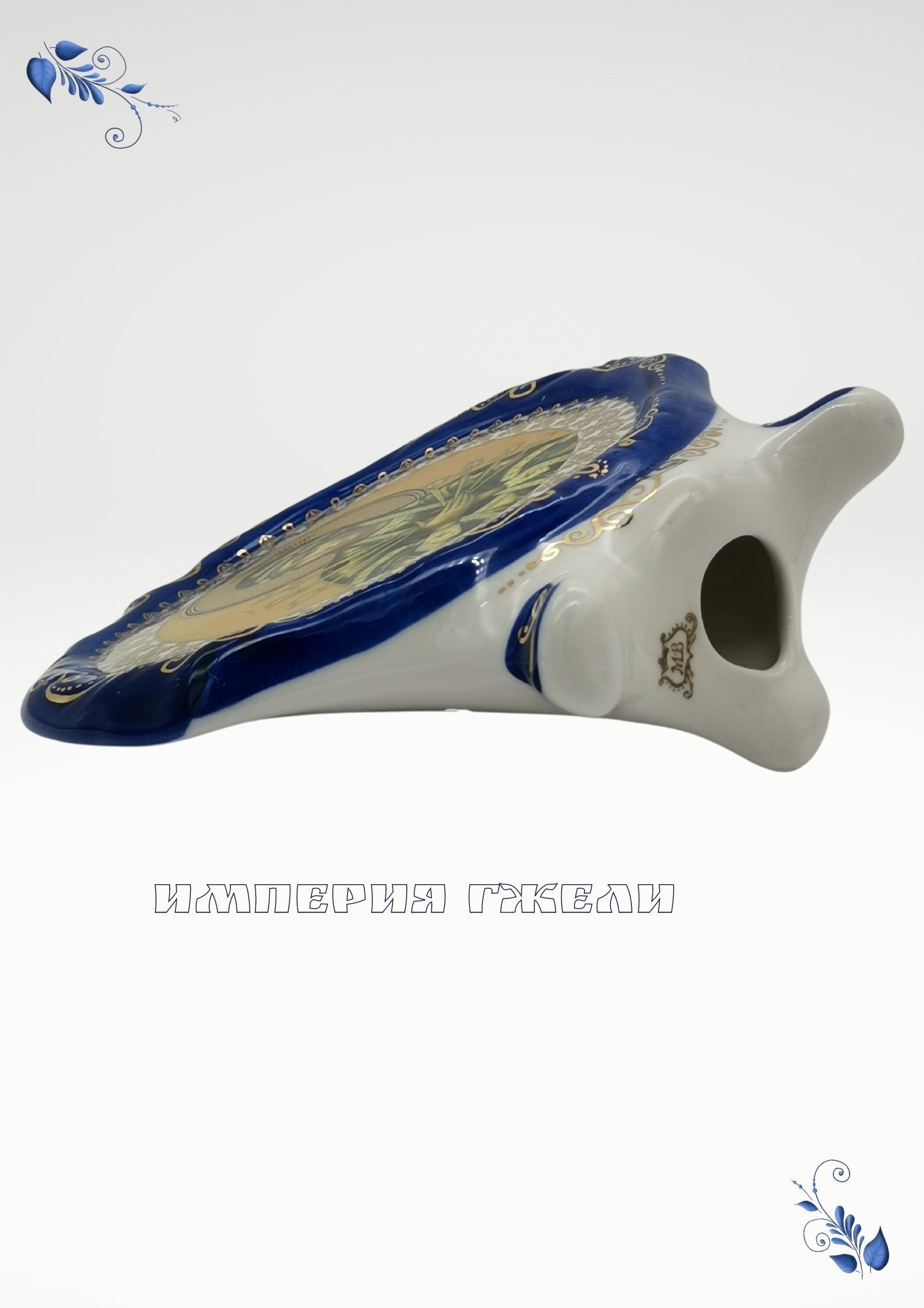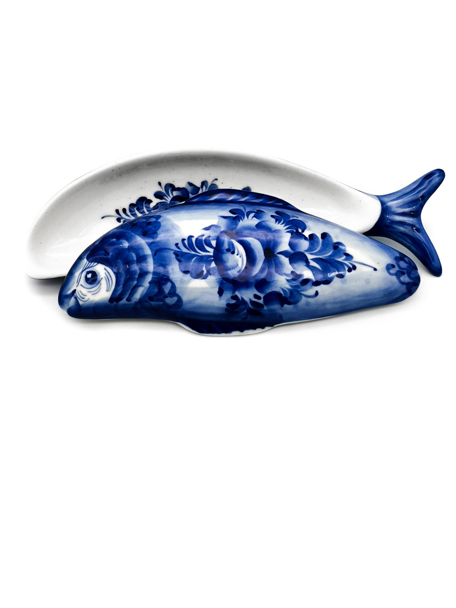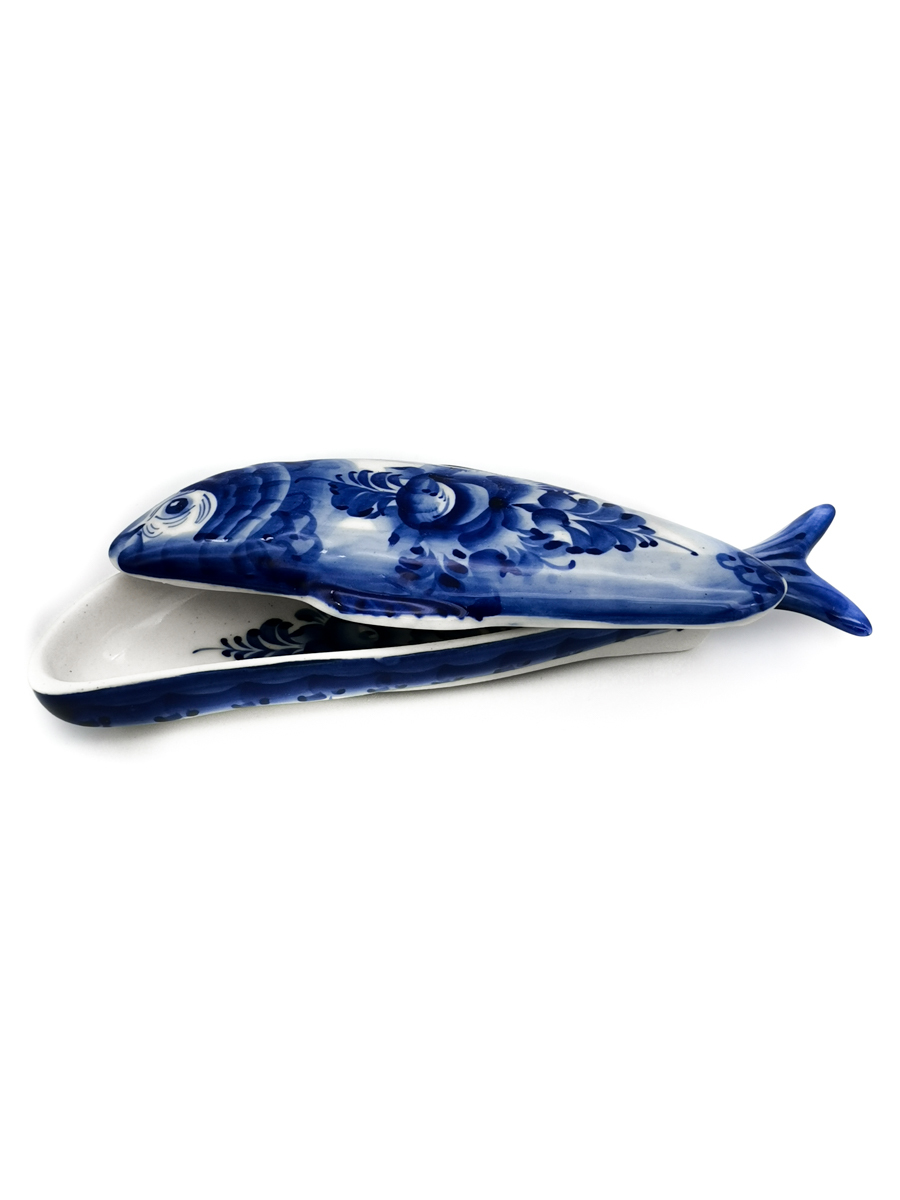 Икорница Рыбка малая 19,5х6,5х3см, 50мл Гжельский фарфор. авторская ручная роспись