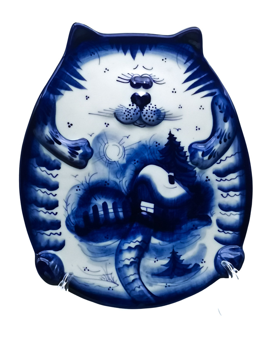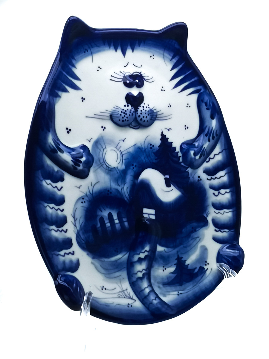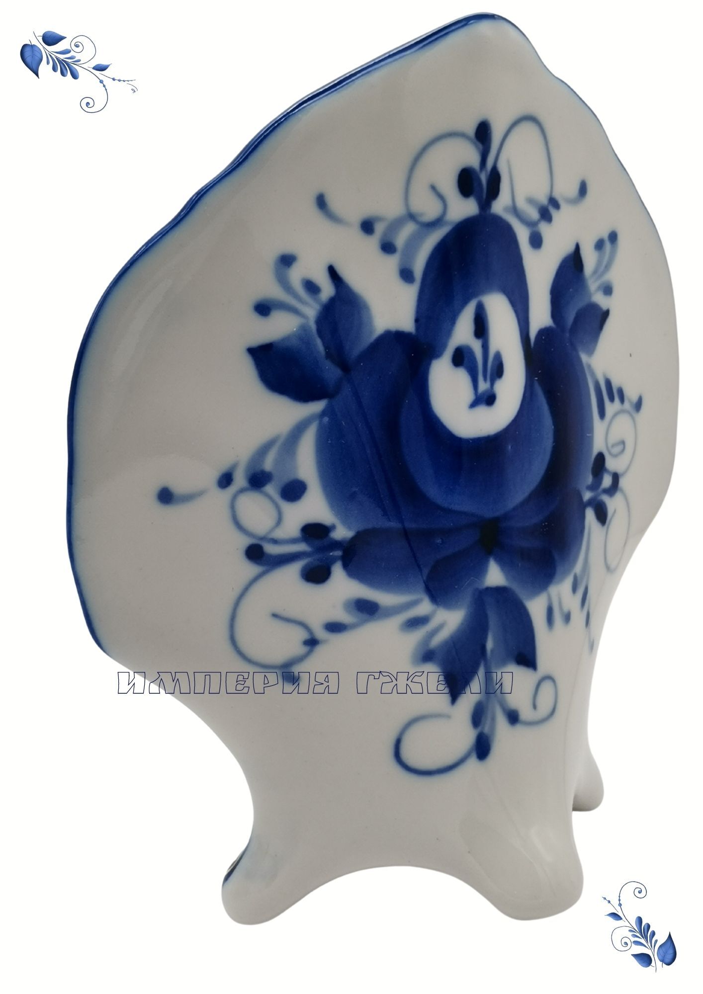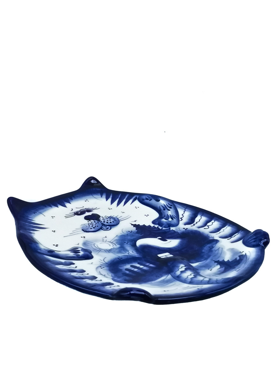 Икорница Рыбка малая 19,5х6,5х3см, 50мл Гжельский фарфор. авторская ручная роспись