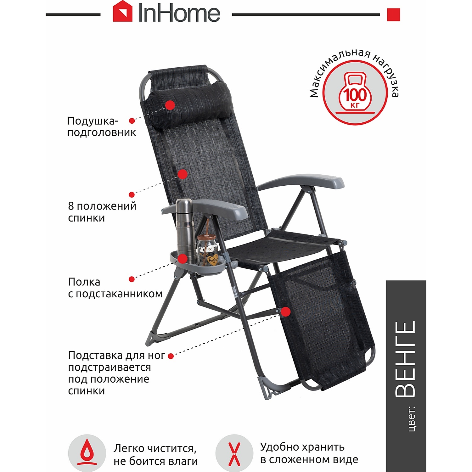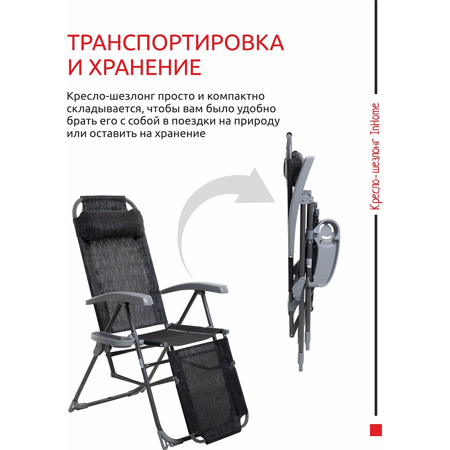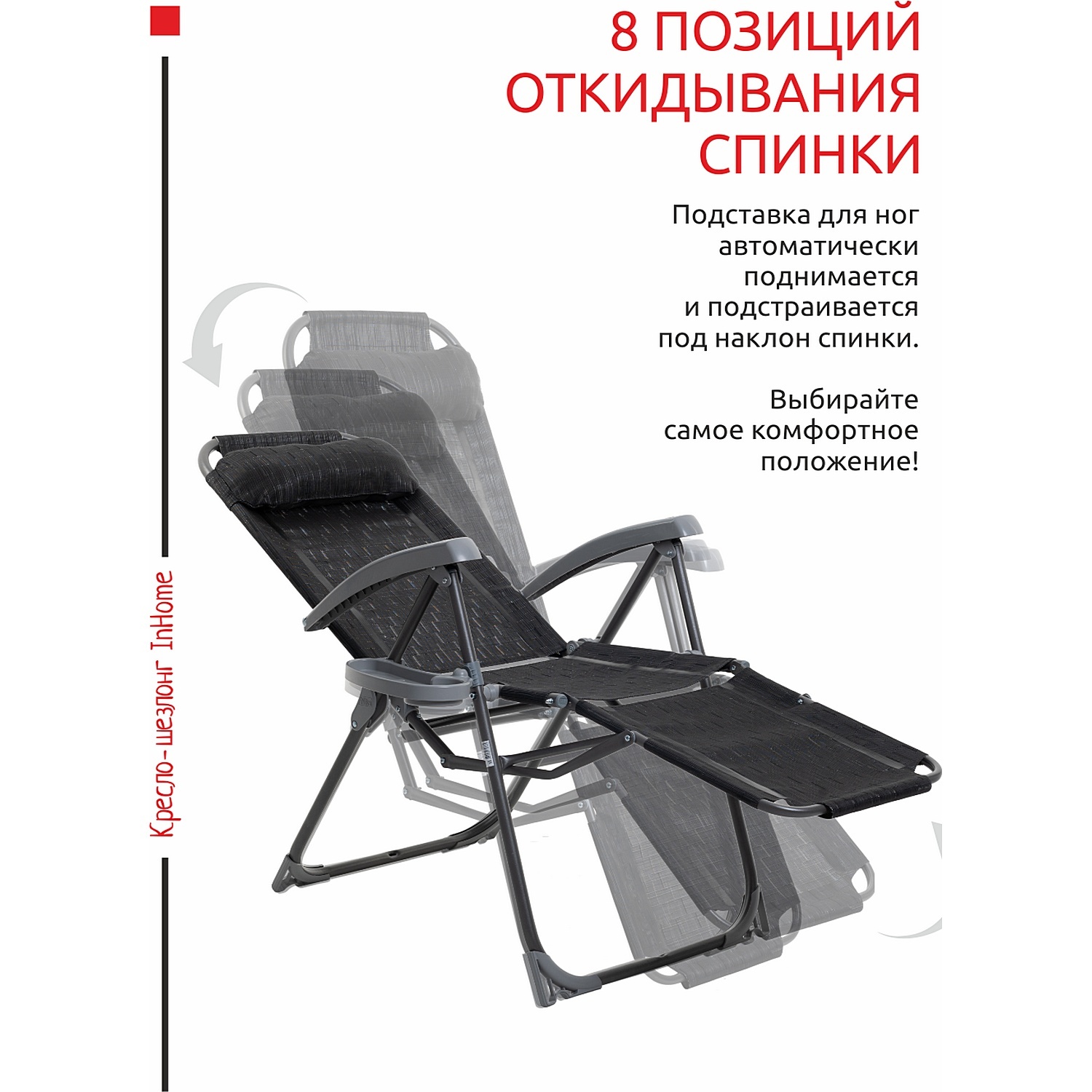 Кресло-шезлонг складное с полкой, подножкой и съемным подголовником, 8 положений спинки