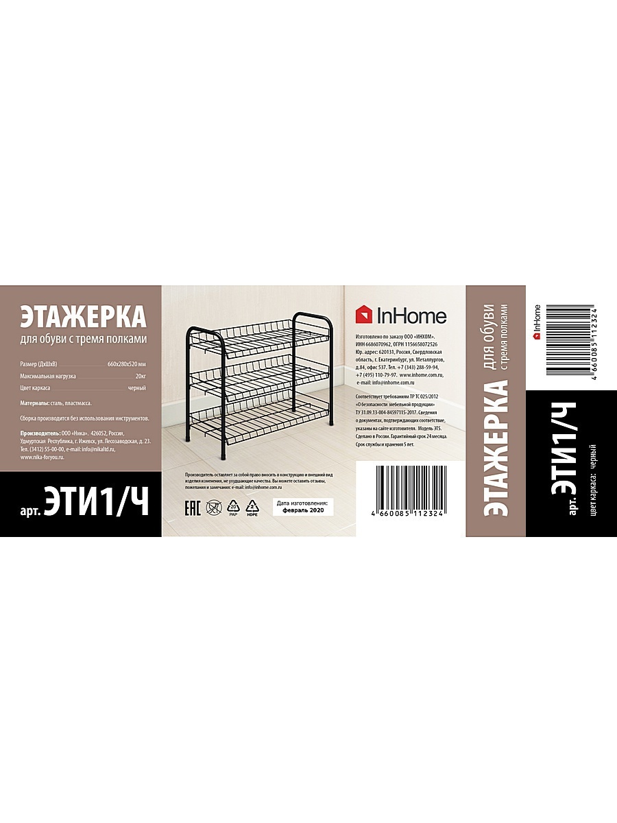 Этажерка для обуви ЭТИ1, Металл, 66х28х52 см