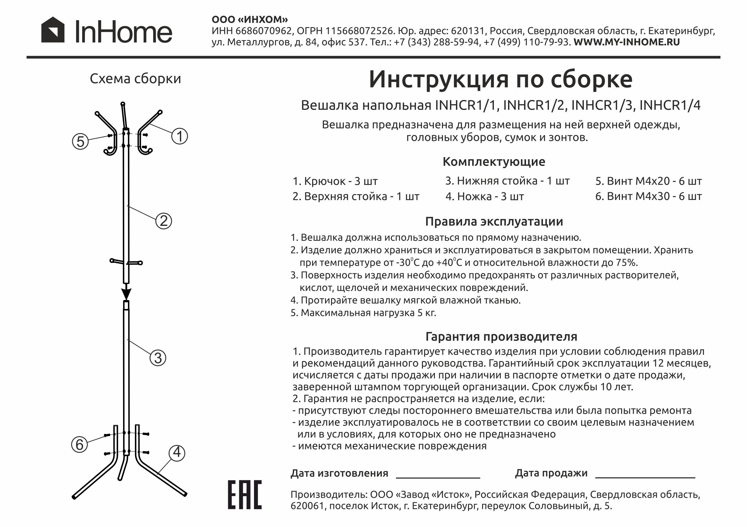 Вешалка напольная InHome, 177 см х 63 см х 63 см