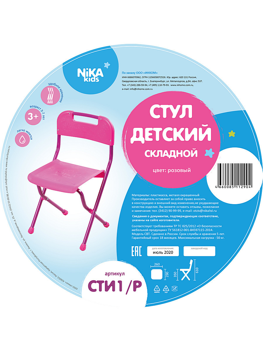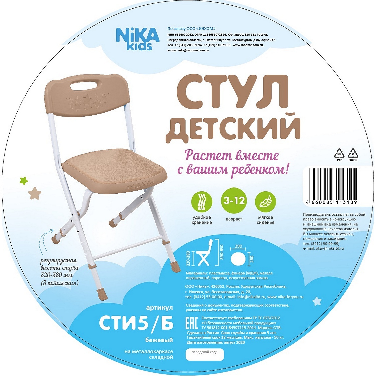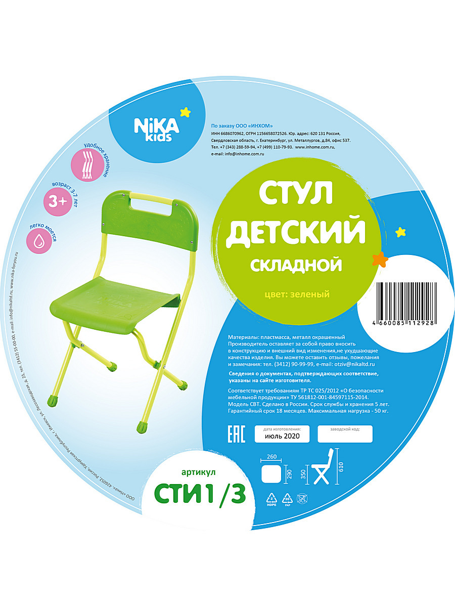 Стул детский складной растущий с мягкими сиденьем и спинкой из водоотталкивающей ткани от 3 до 7 лет