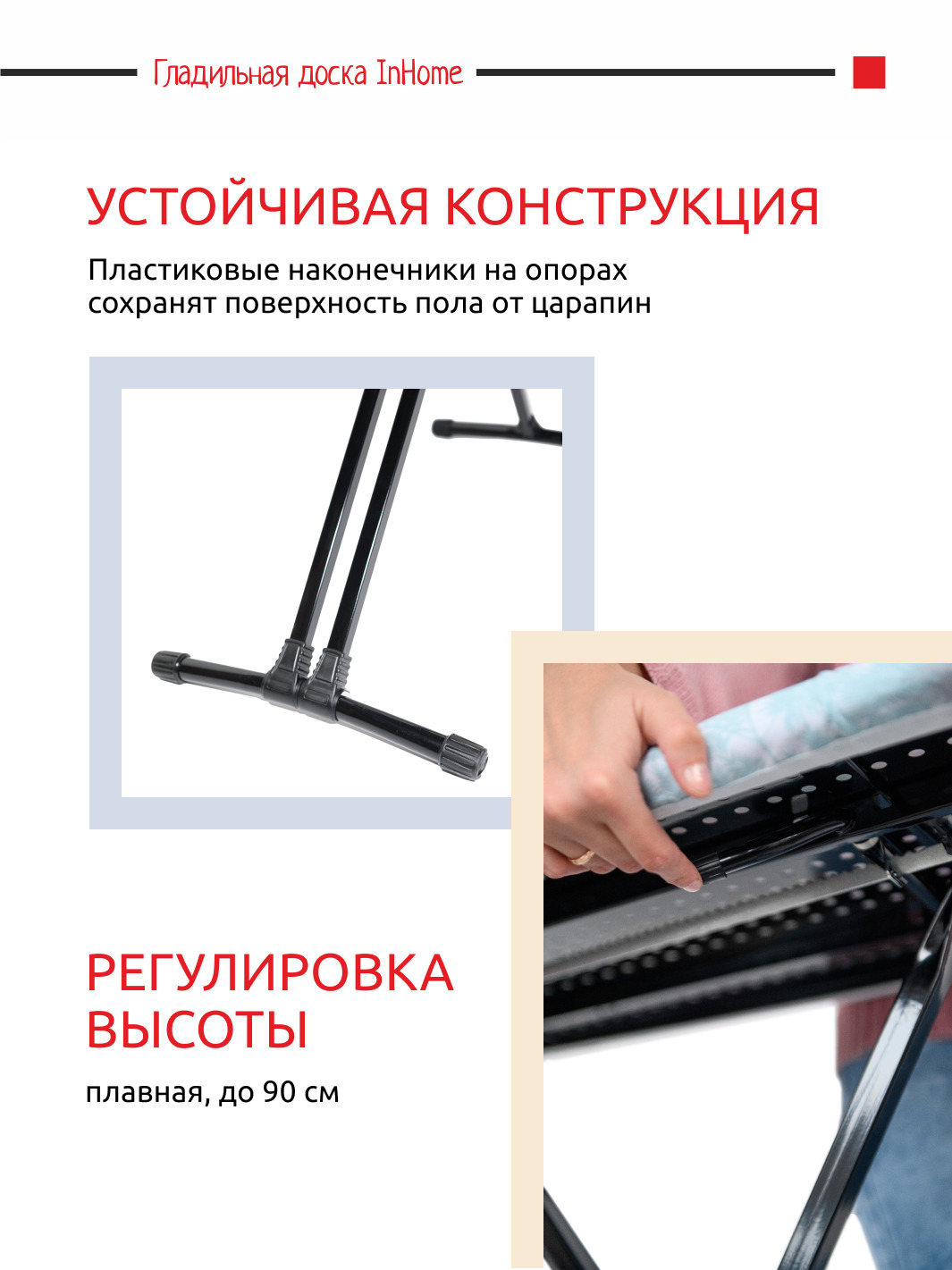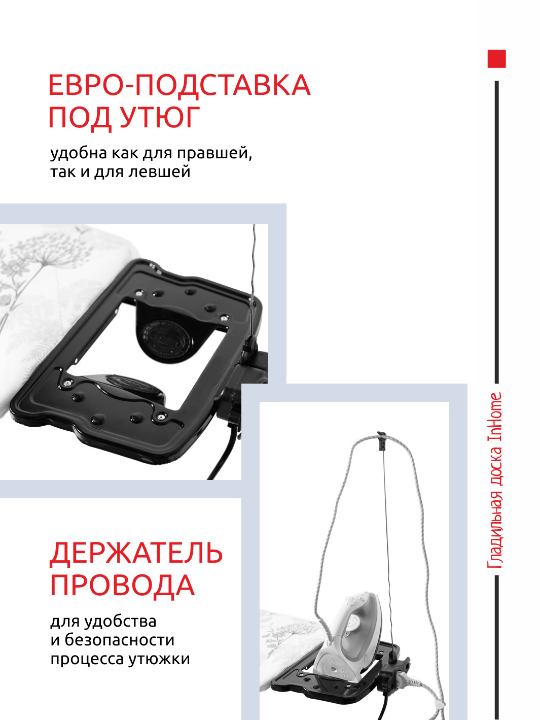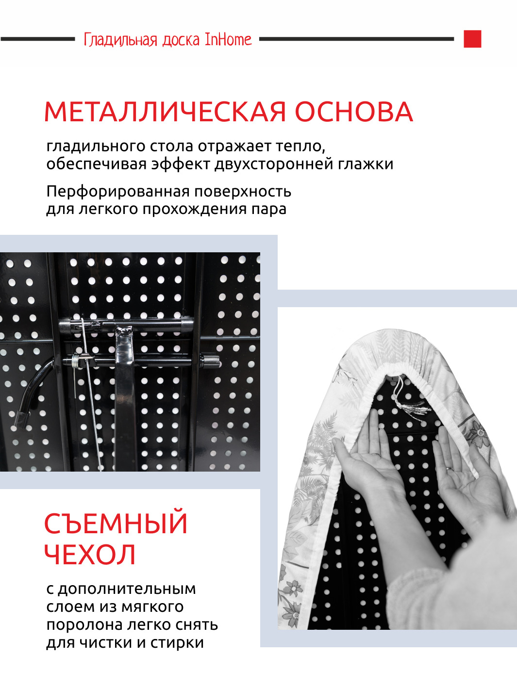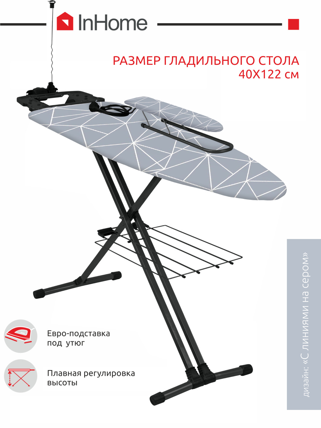 Гладильная доска InHome моноблок (1220х400 мм), подрукавник, удлинитель, полка для белья