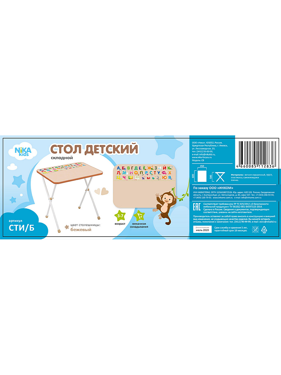 Стол детский складной, на столешнице можно рисовать маркером на водной основе, 3-7 лет