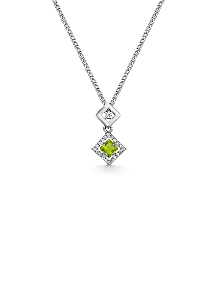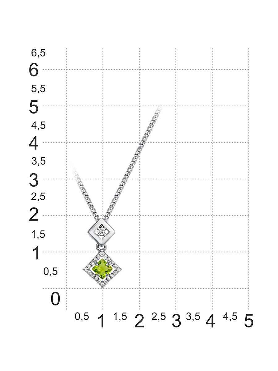Intalia Колье из серебра 925 пробы со вставками из фианита, хризолита синтетического