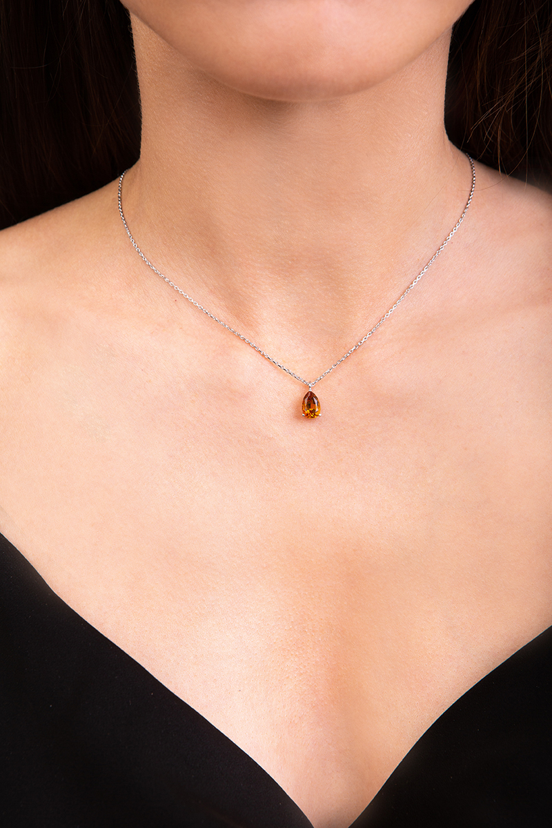 Intalia Колье из серебра 925 пробы со вставками из цитрина натурального