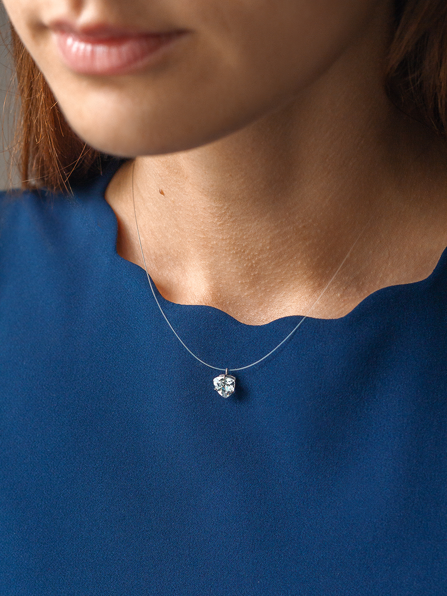 Intalia Колье из серебра 925 пробы со вставками из фианита, на моно-нити