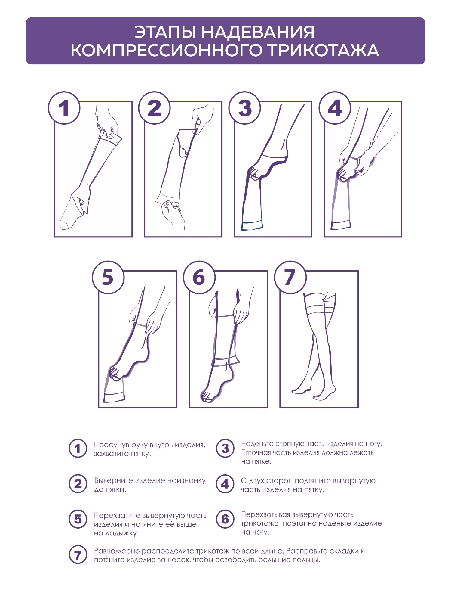 Чулок компрессионный II класса компрессии на одну ногу (моночулок), на правую ногу, 1-й рост