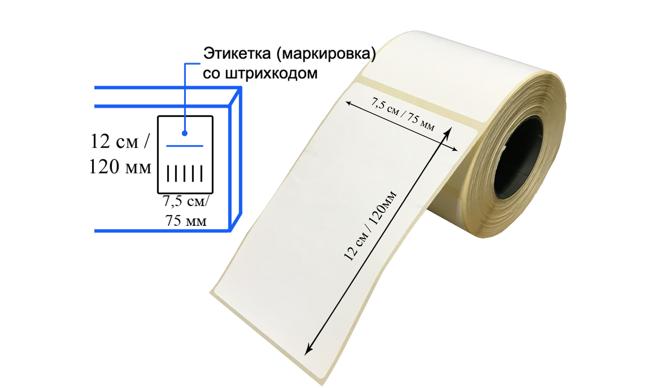 Термоэтикетки 75х120 мм (самоклеящиеся этикетки ЭКО) (300 эт. в рол., вт.40)