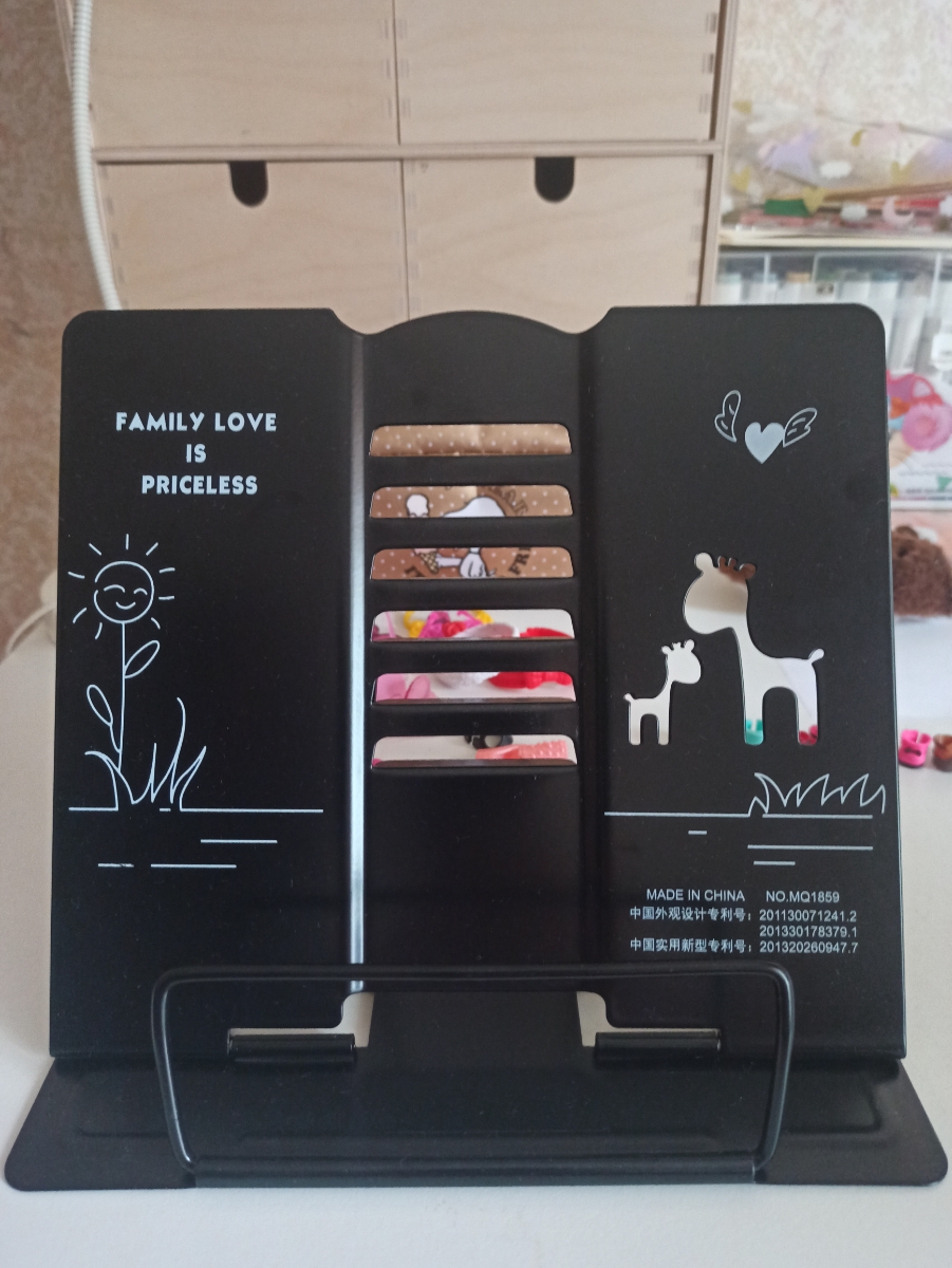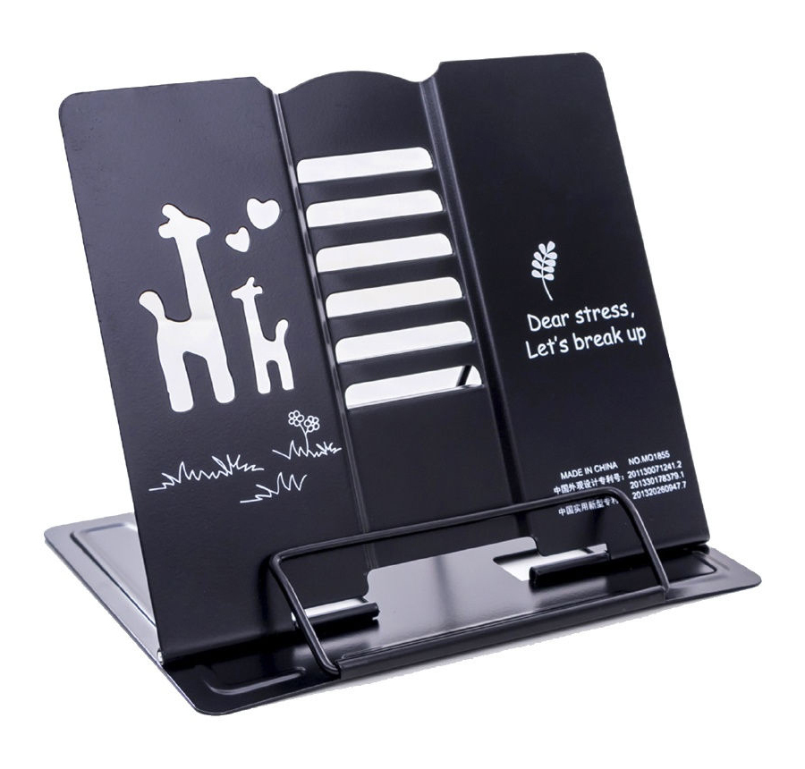 Подставка-держатель для книг и учебников металлическая 210 х 190 мм с рисунком "Жирафики" черная