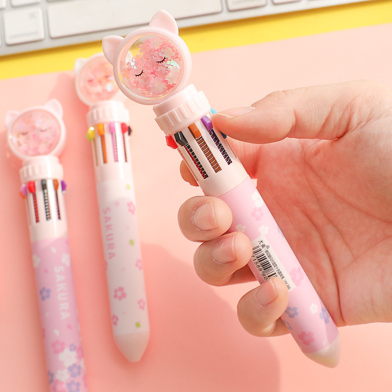 Ручка шариковая "Спящий котик" с выбором цвета, чернила 10 цветов, с фигуркой (НАБОР 2 ШТ.)