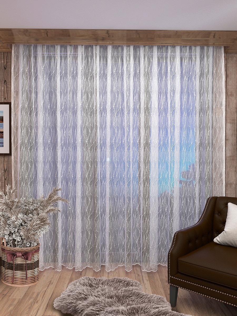 Тюль INVA "Волны" высота 260 см, ширина 300 см, крепление - Лента, белый