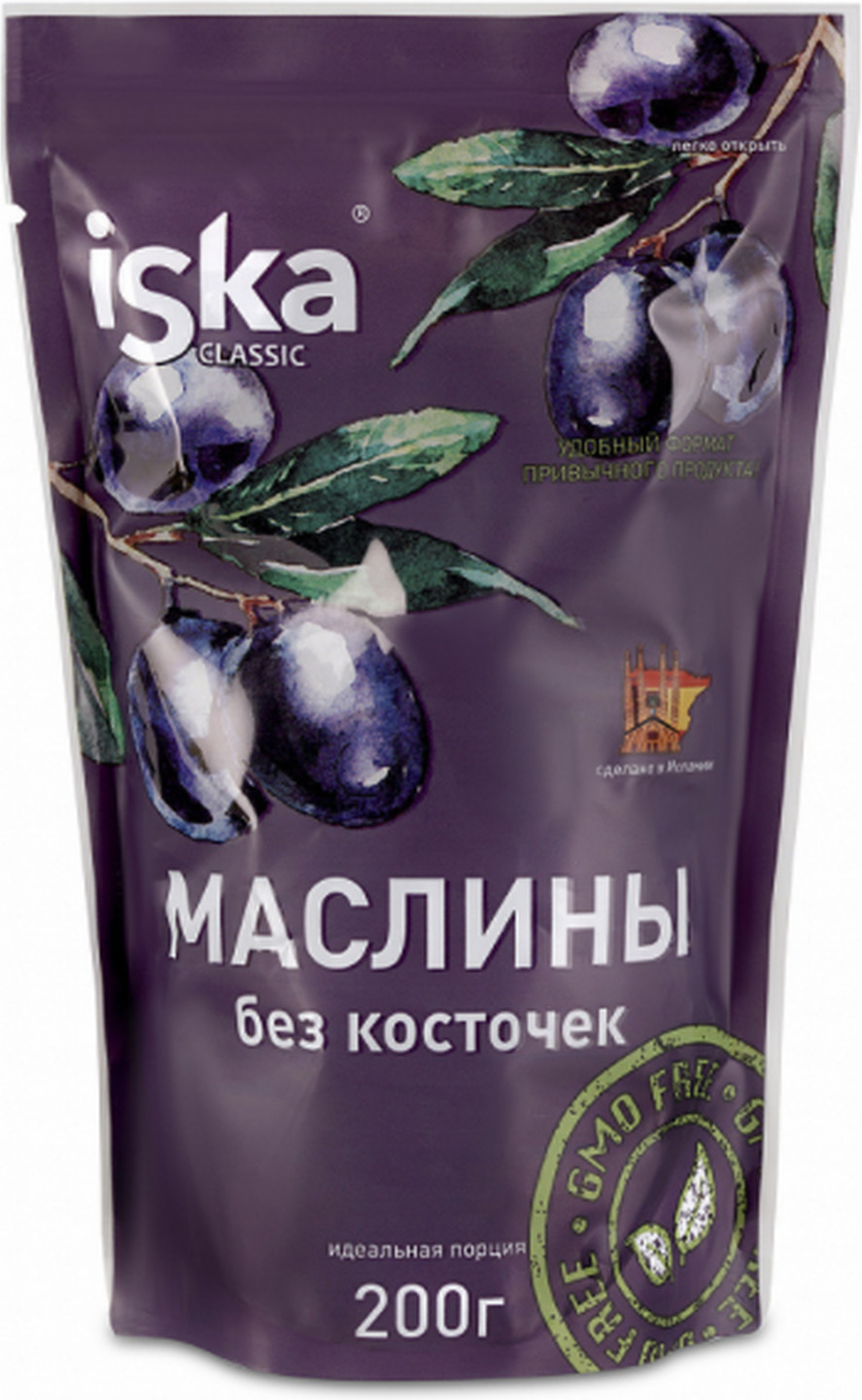 Оливки черные (маслины) без косточки ISKA, дойпак, 200 мл