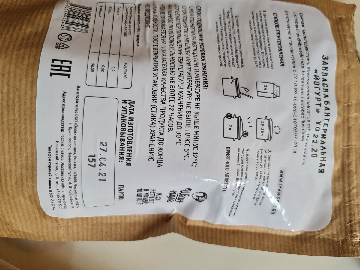 Закваска для йогурта Иван-поле, сухая закваска, 10 порций по 3 гр