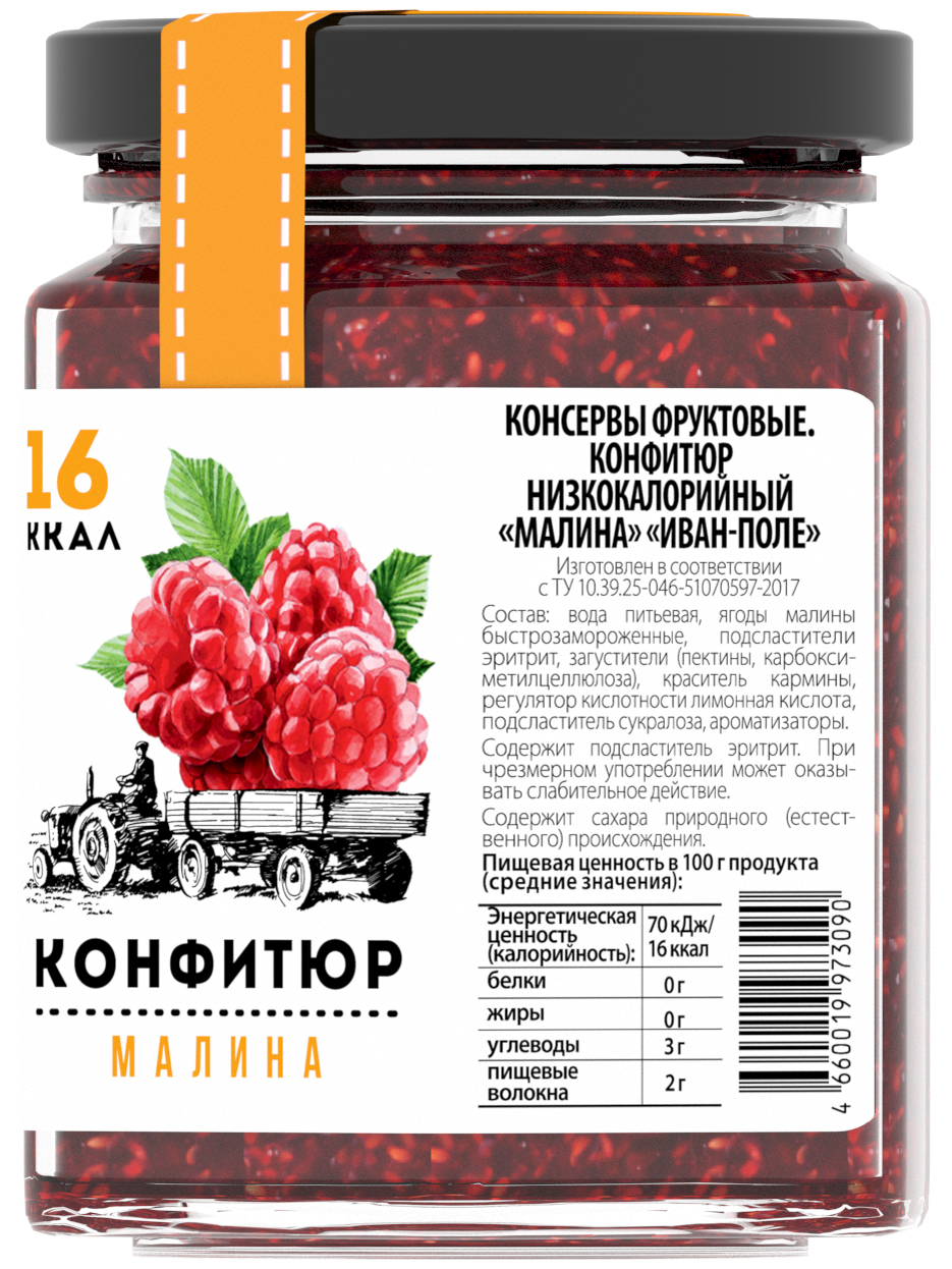 Конфитюр низкокалорийный Малина Иван-поле, без сахара, 180г