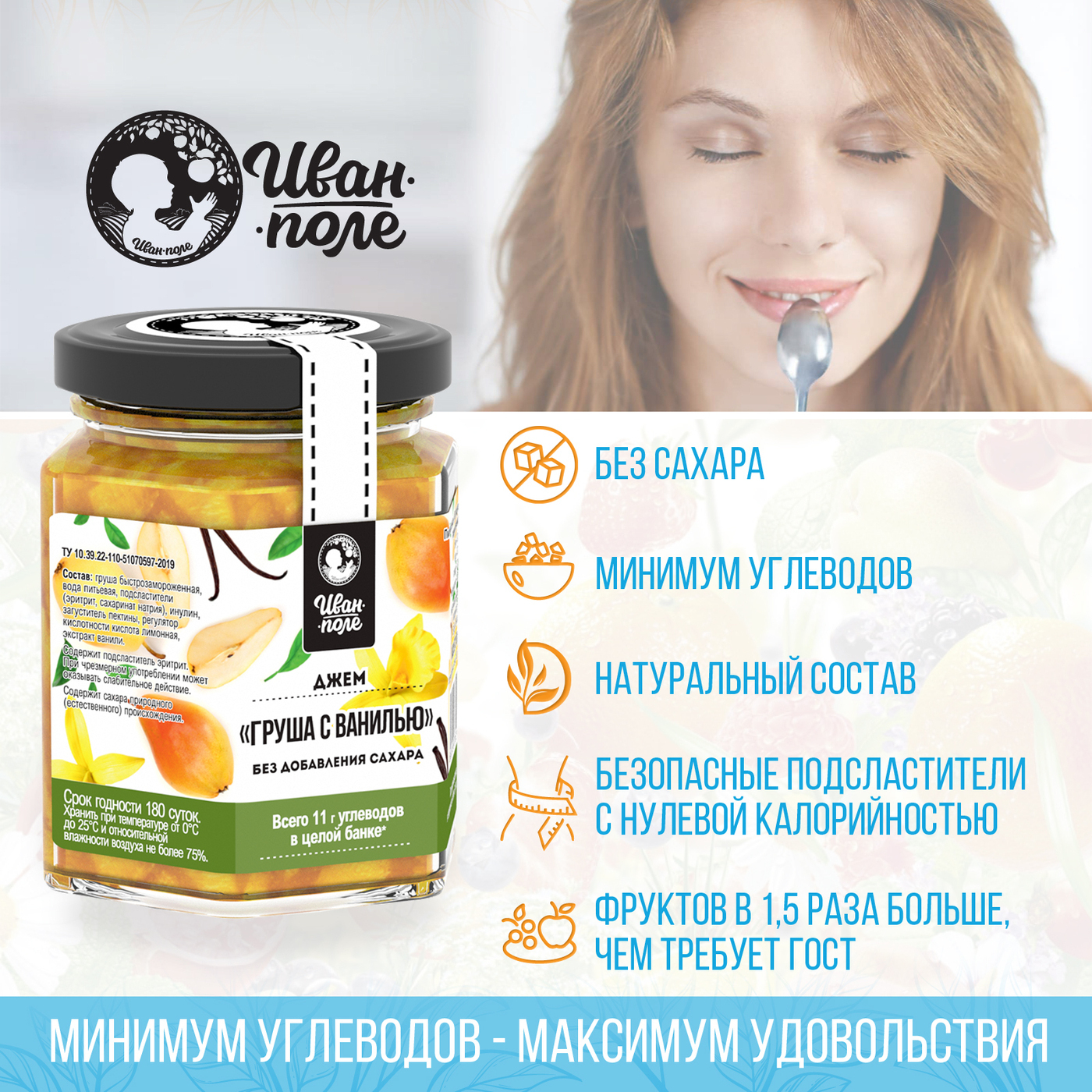 Джем низкокалорийный Иван-поле Груша с Ванилью, без сахара, правильное питание, пп продукты, 180 г