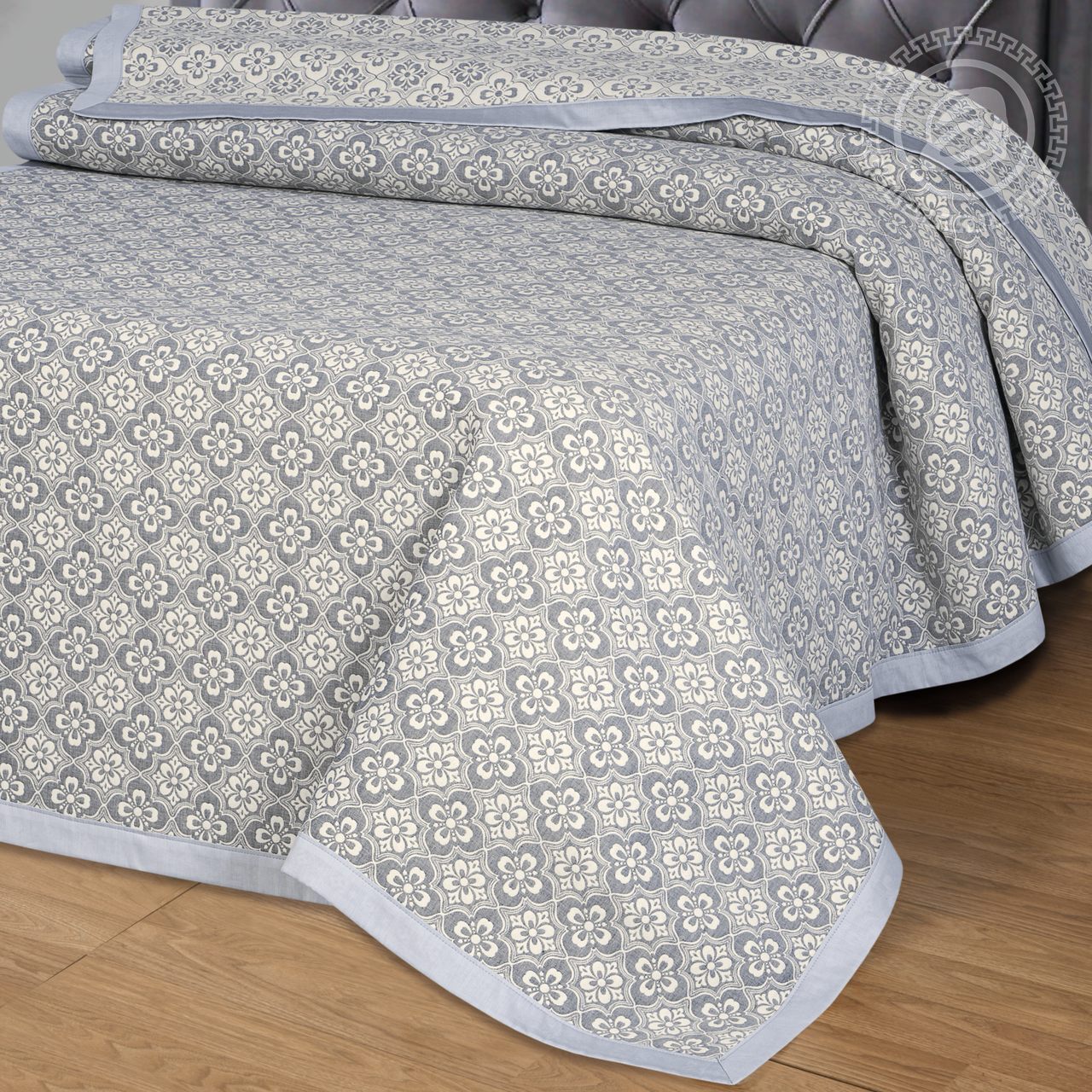 Покрывало Ивановский текстиль Танец цветов сине-серое с размерами: 220 x 235 см
