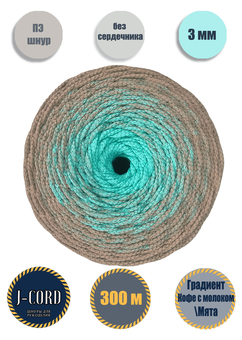 Шнур полиэфирный для вязания/ Шнур для рукоделия 3 мм градиент/Шнур для рукоделия