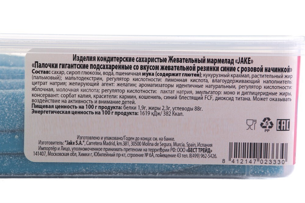 Жевательный мармелад Jake Палочки Черника в сахаре короткие 1,4 кг