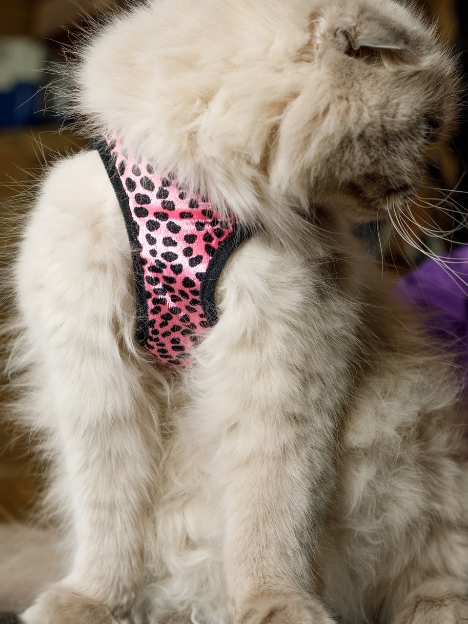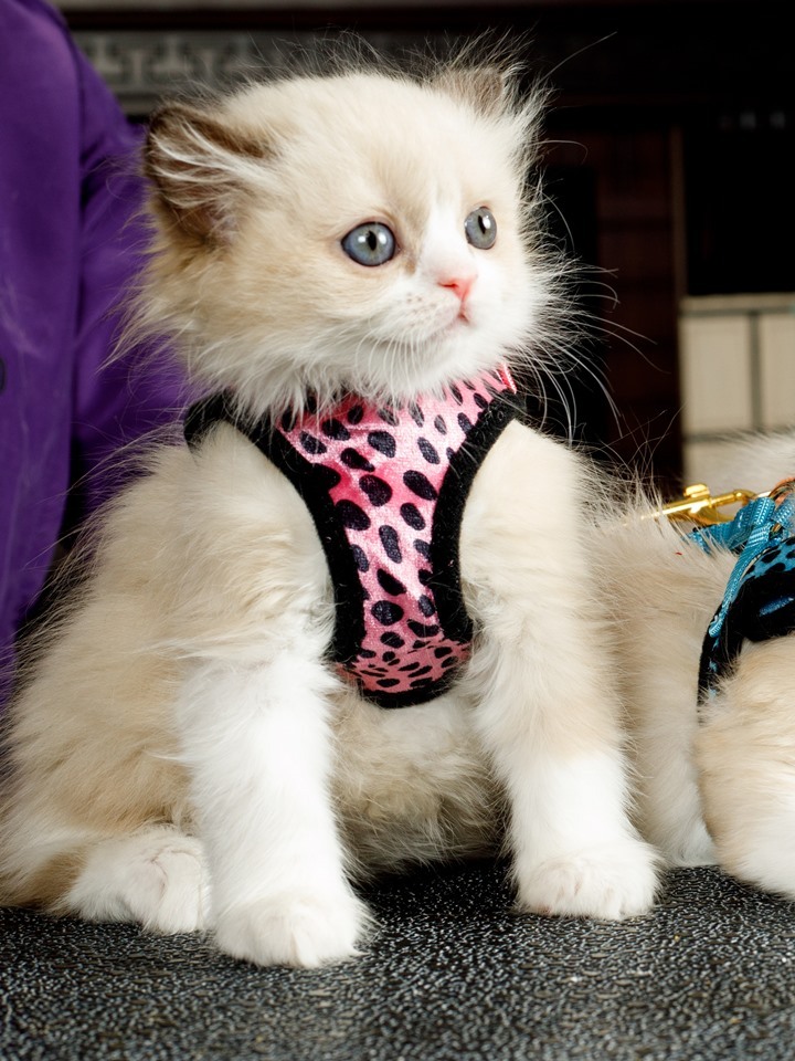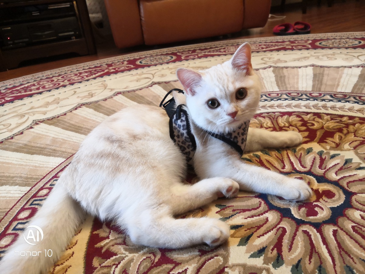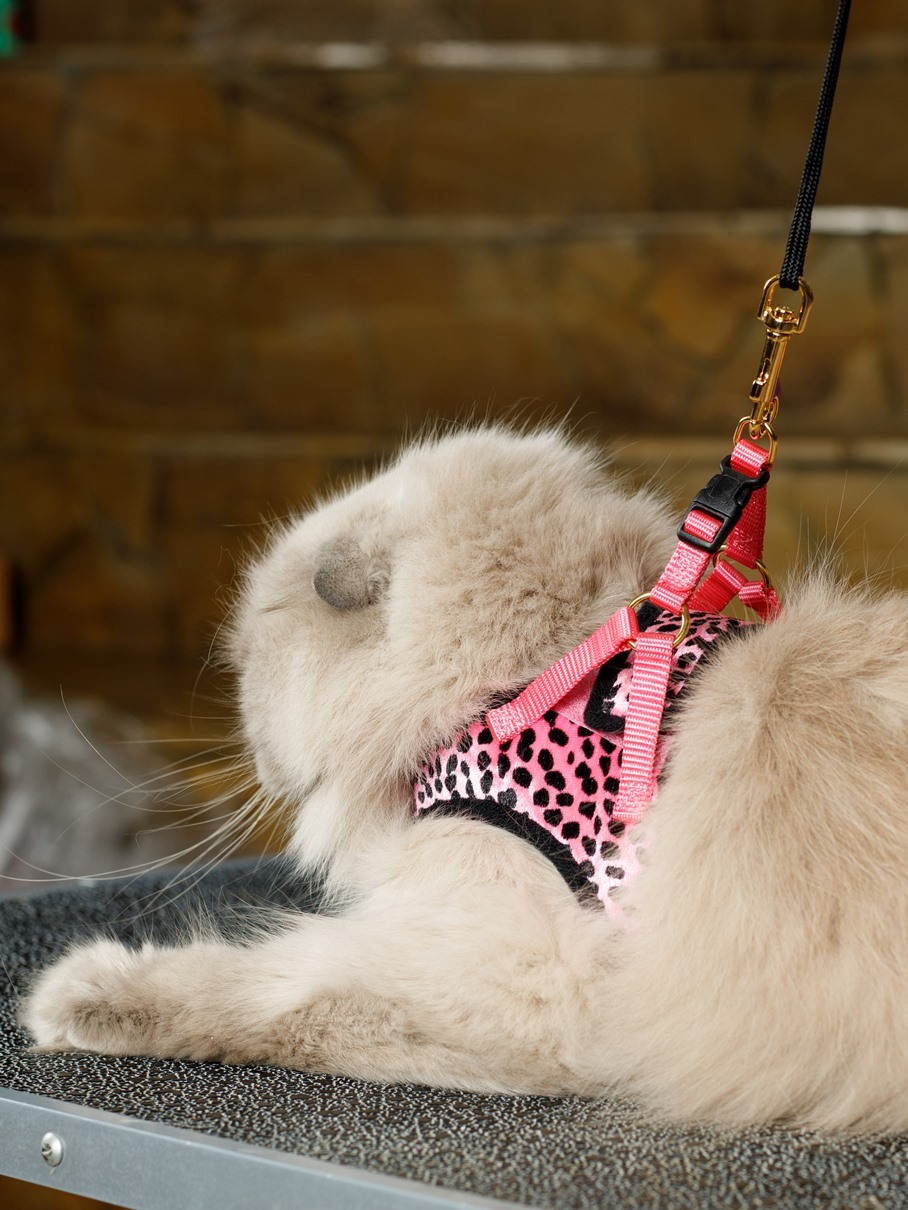 Анатомическая шлейка Japan Premium Pet для кошек с функцией защиты от колтунов. Размер S.Белая