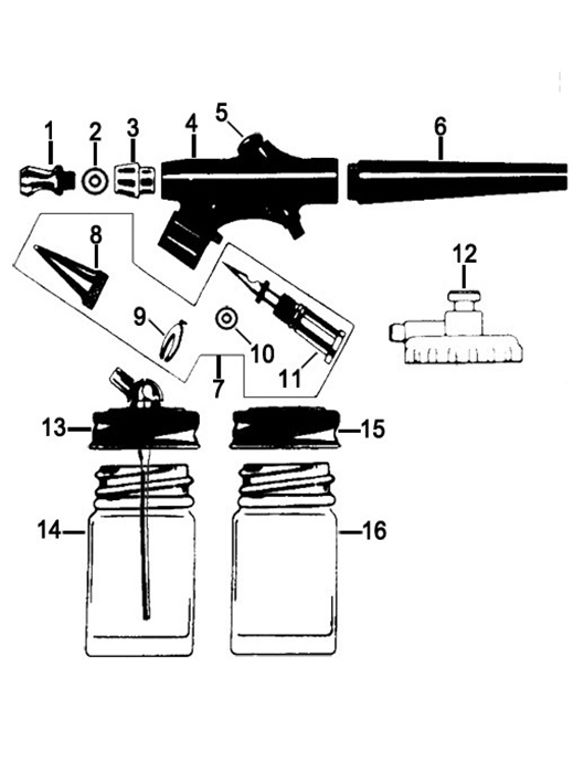 JAS 5555 Набор для резьбовых аэрографов 0,7 мм (игла, сопло, диффузор)