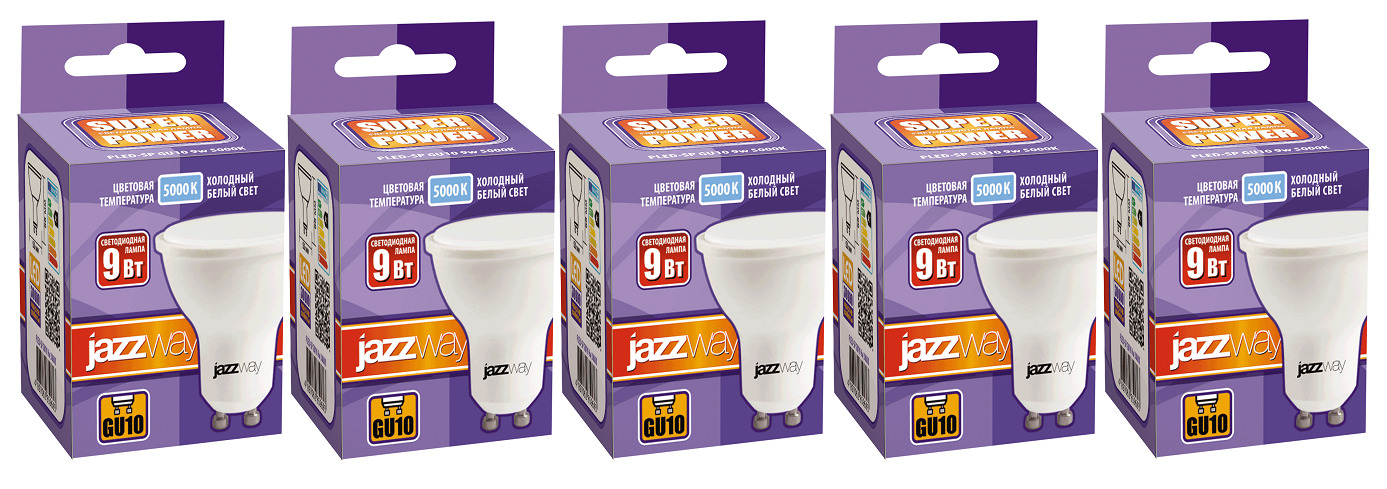 Лампочка Jazzway PLED-SP, Холодный белый свет, 9 Вт, Светодиодная, 5 шт.