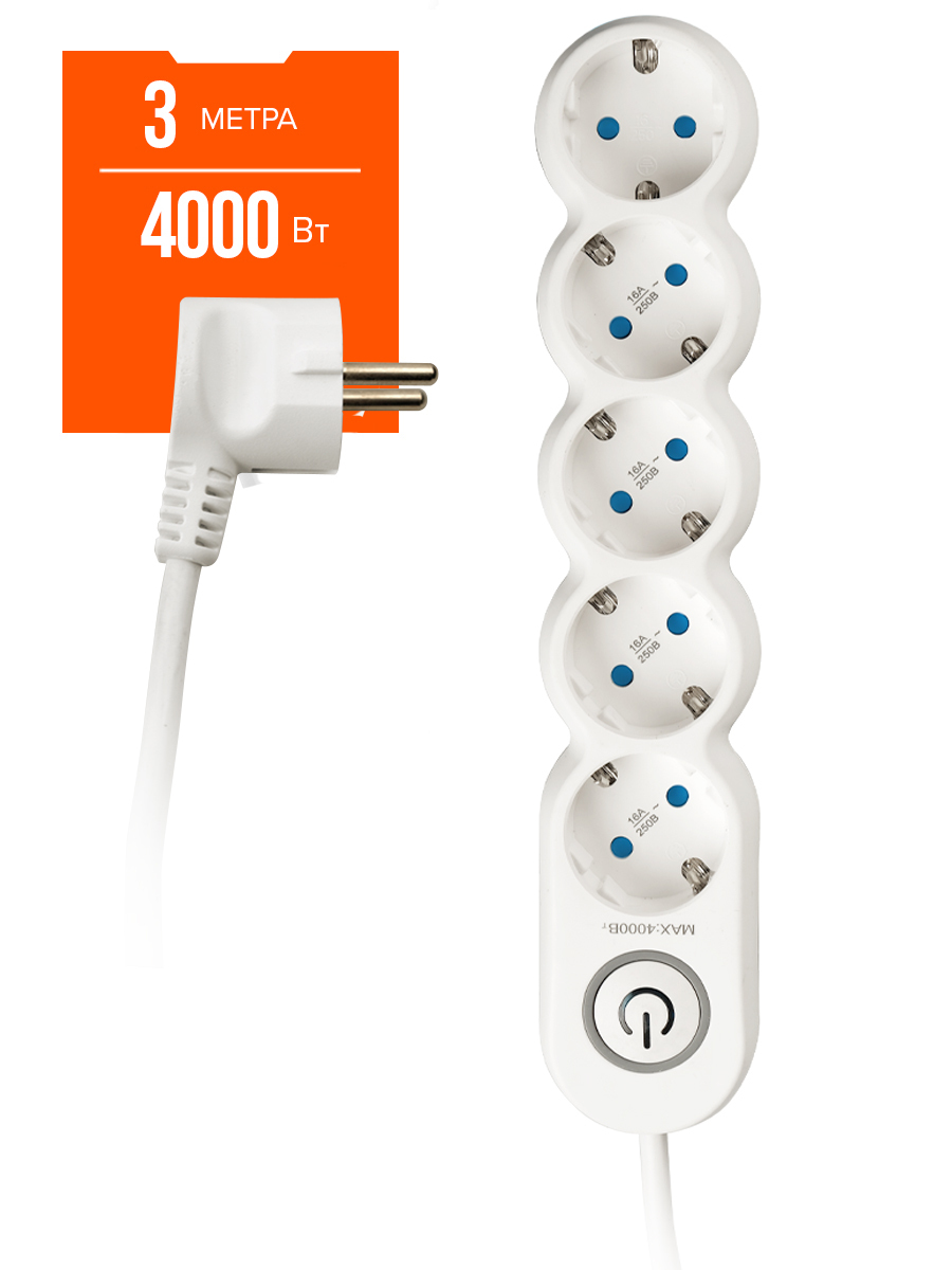 Удлинитель JAZZway c заземлением и выключателем 3м EX-05GS-300