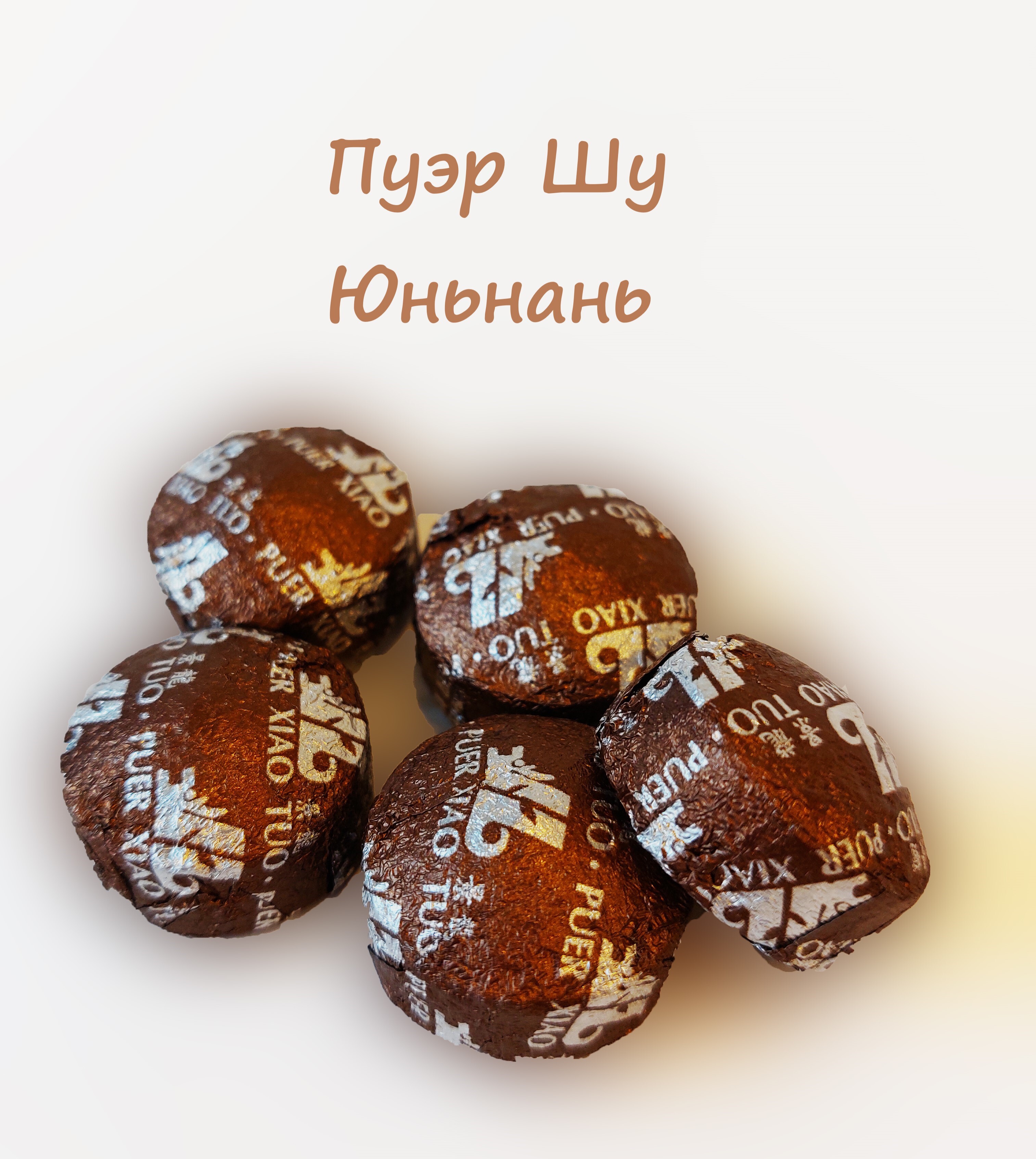 Чай Микс Прессованный - Пуэр Шу Юньнань, Пуэр Шу с Жасмином, Пуэр Шэн, Дянь Хун, 20 шт Сяо То