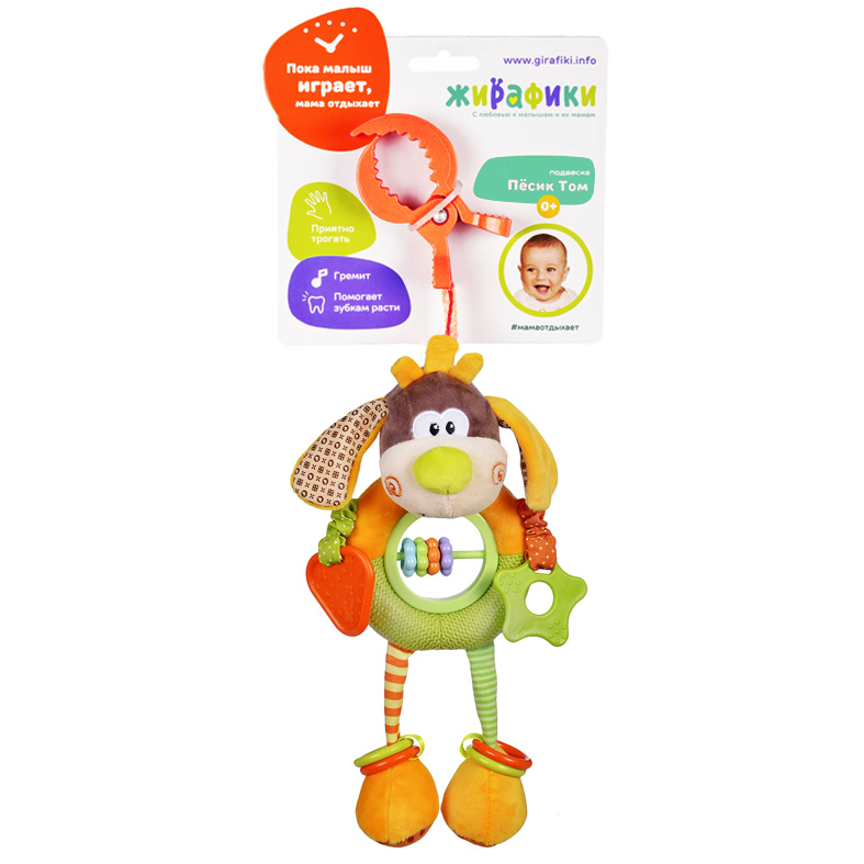 Жирафики Игрушка-подвеска Пёсик Том с прорезывателями и погремушками
