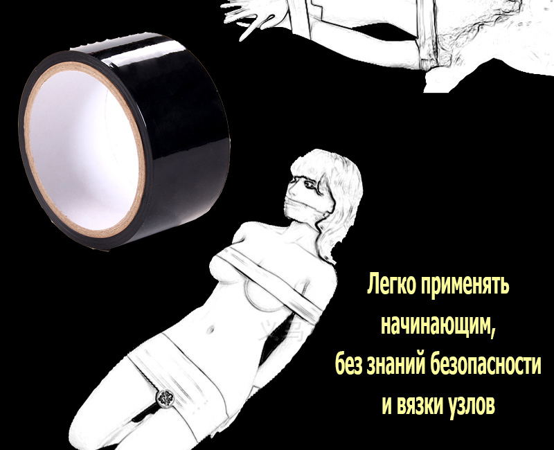 Скотч для связывания, для бондажа, лента БДСМ для фиксации, скотч БДСМ черный для ролевых игр