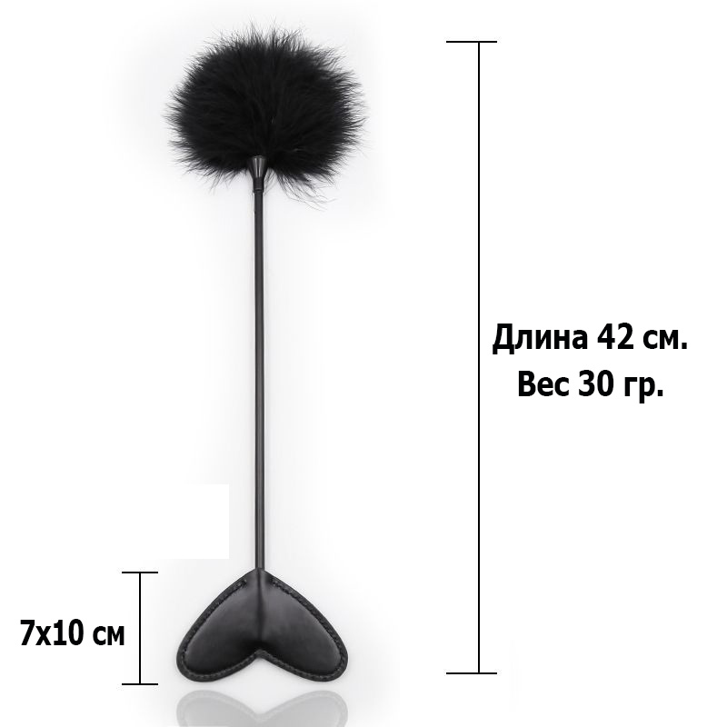 Черный стек в форме сердца с пуховкой на конце - 42 см.