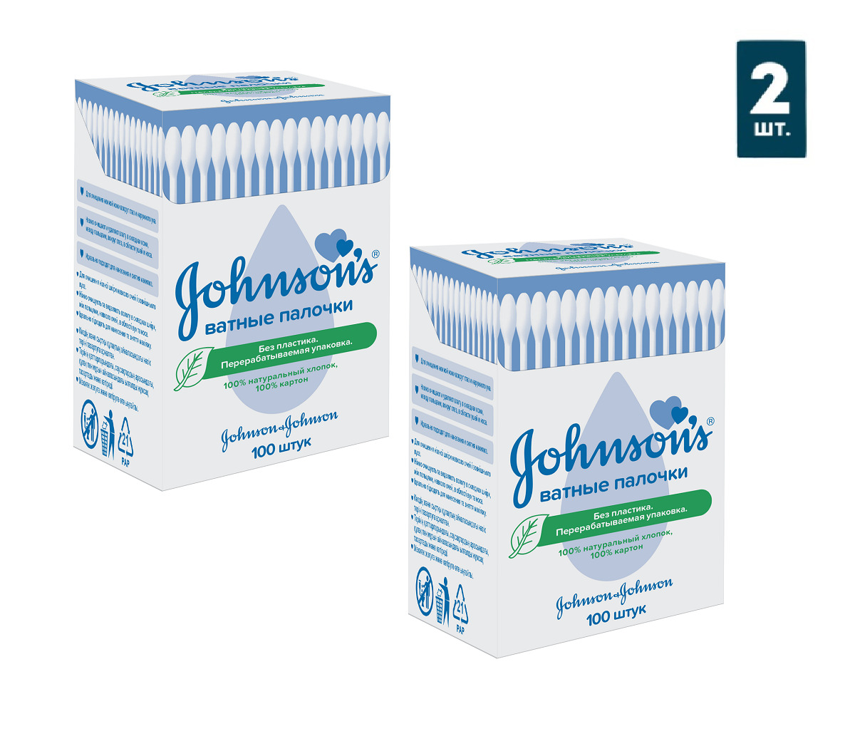 Johnson's Baby (Джонсонс беби) Ватные палочки из 100 % чистого хлопка, 2 х 100 шт