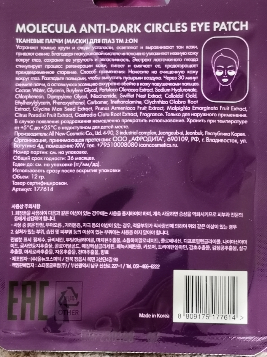 J:ON Набор корейских альгинатных масок для лица Антивозрастная, Гладкость, Эластичность, 3 шт