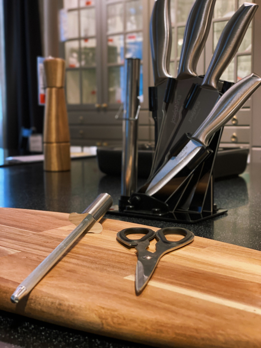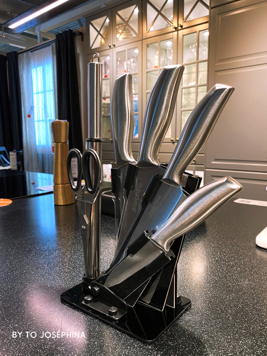 Набор кухонных ножей на подставке из 7 предметов с ножницами и точилкой Josephina