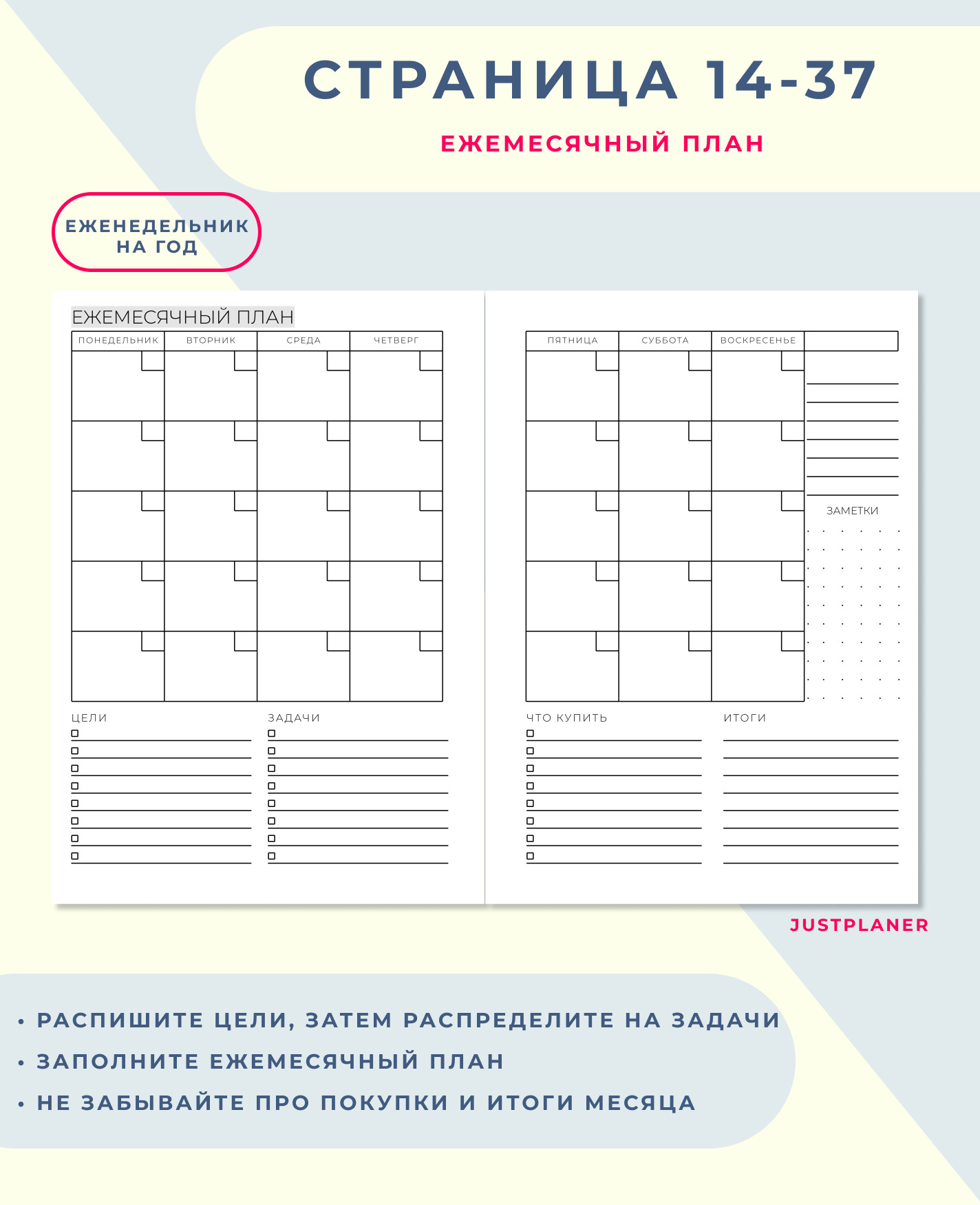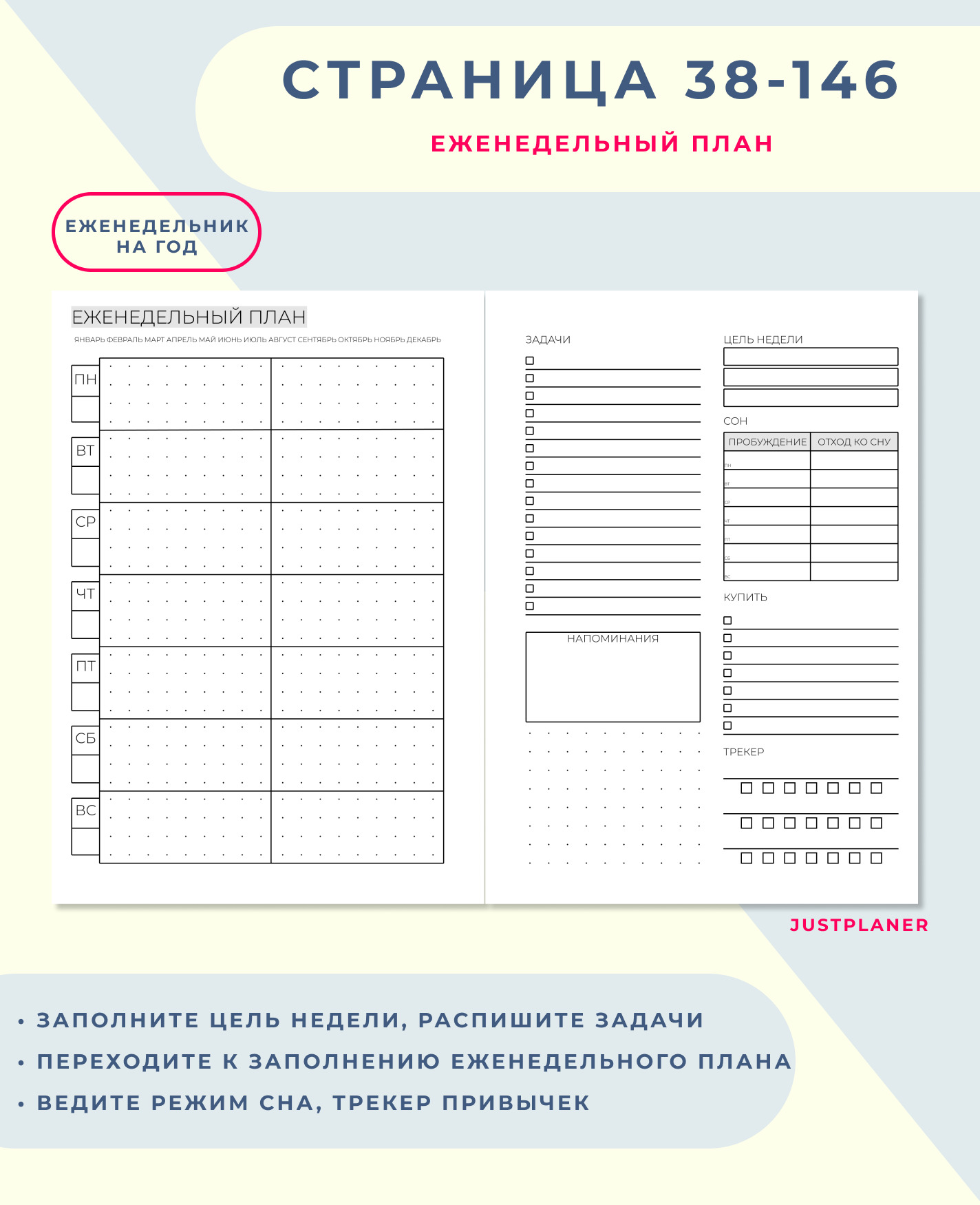 Планер Еженедельник JustPlaner "Правила 3х Н". Рассчитан на 12 месяцев. Формат: А5