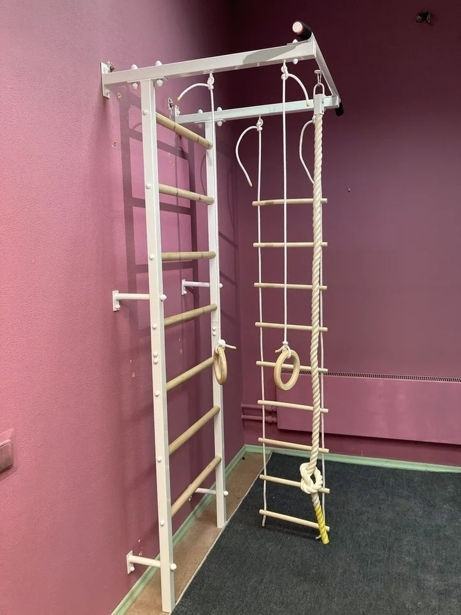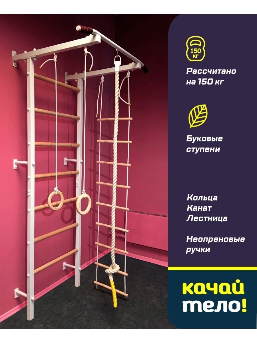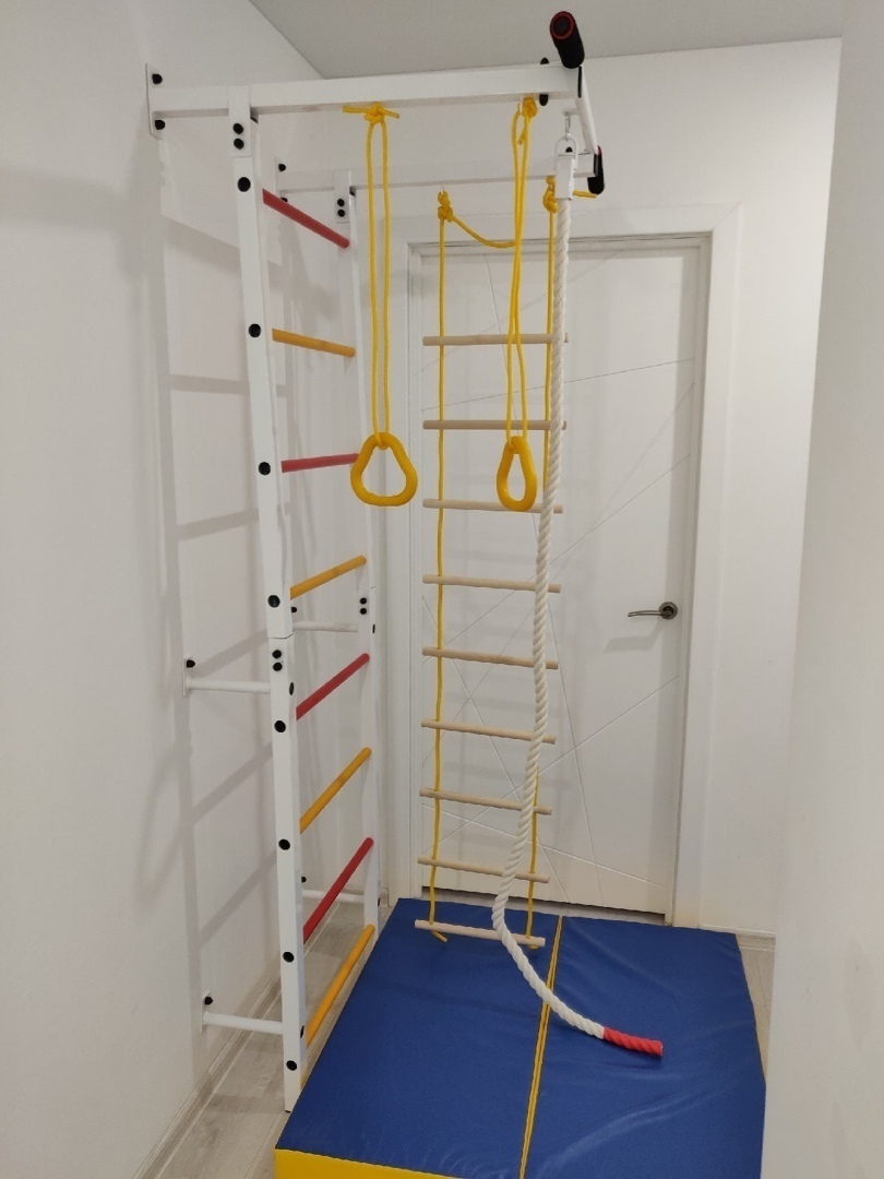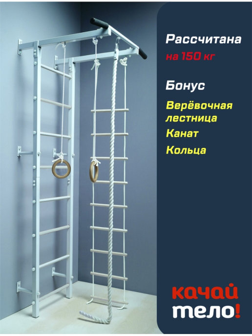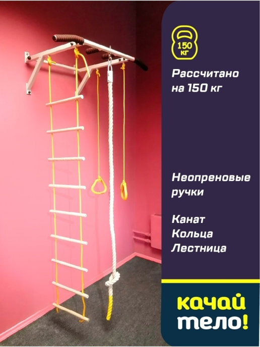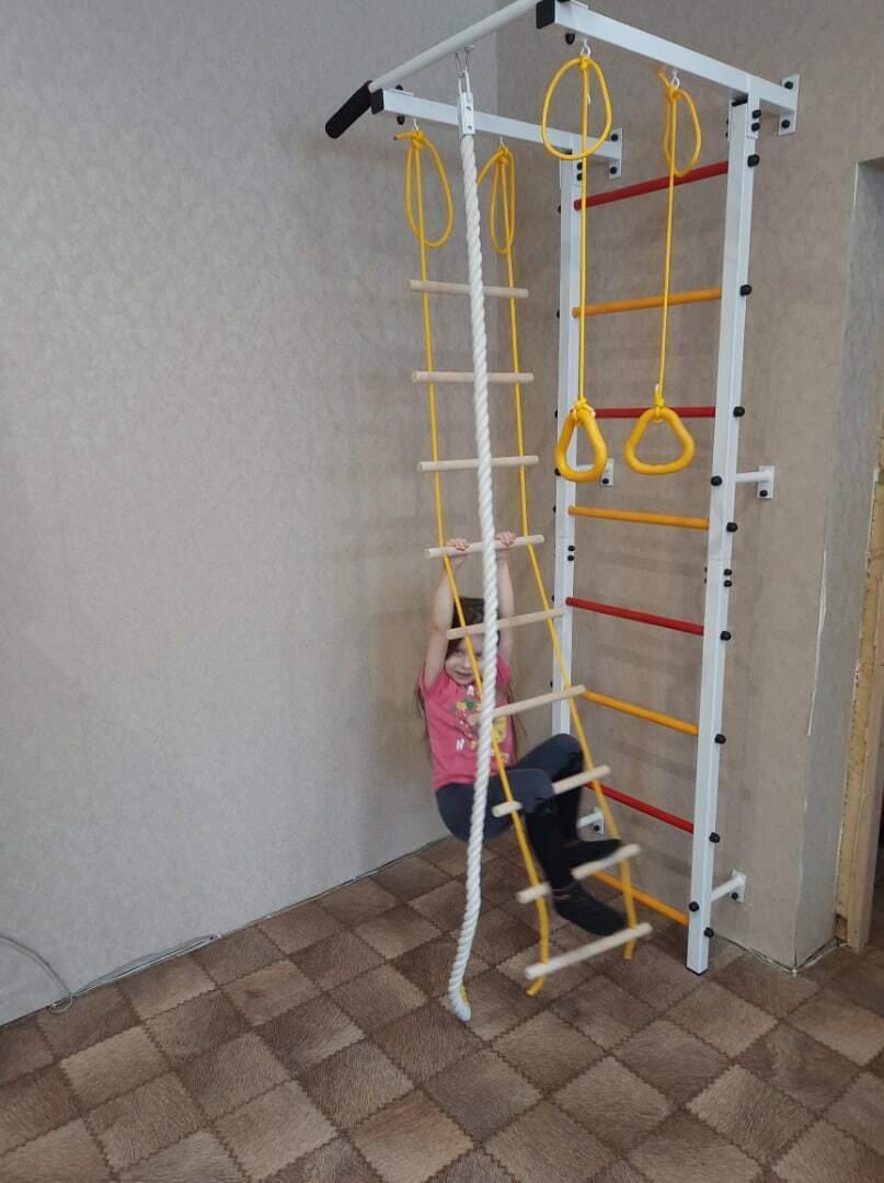 Шведская стенка(детская)+канат+кольца+лесенка деревянная. Качайтело