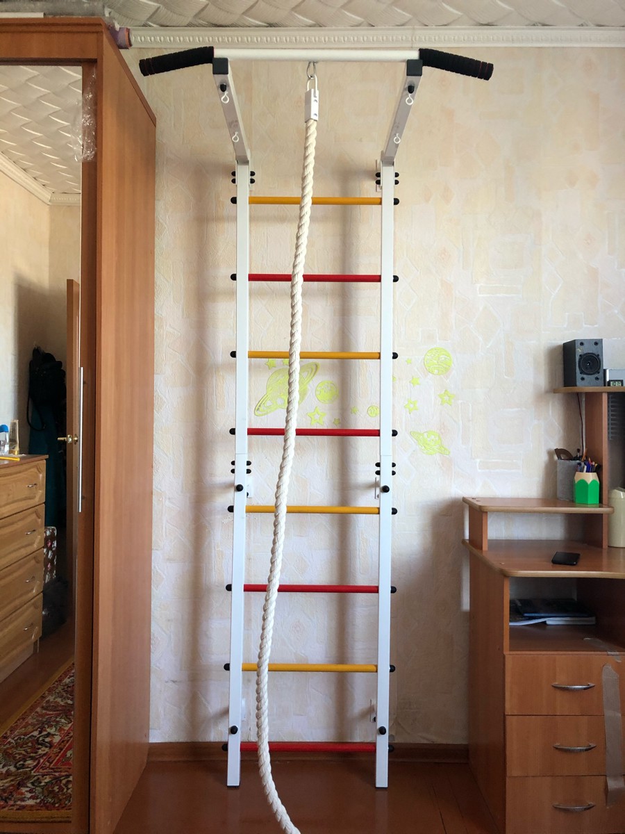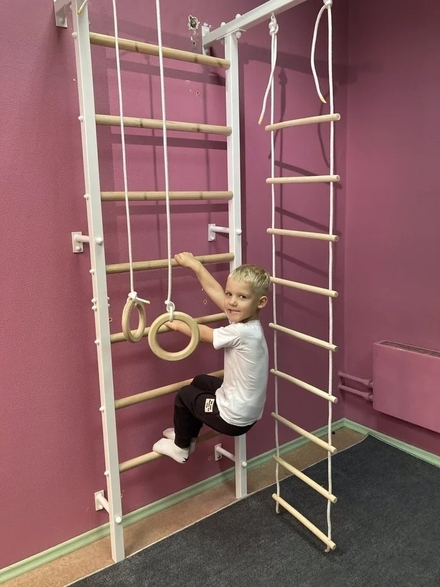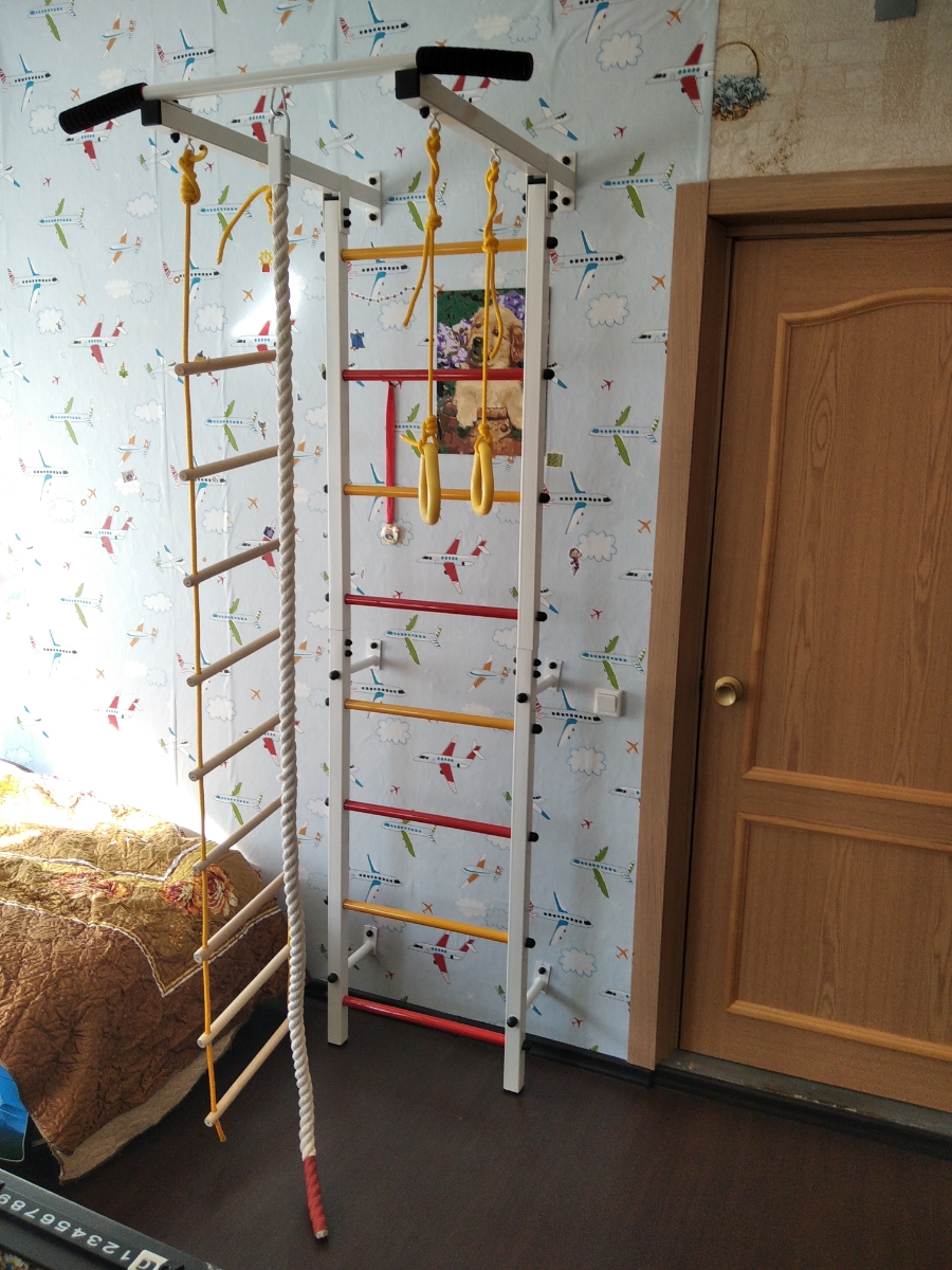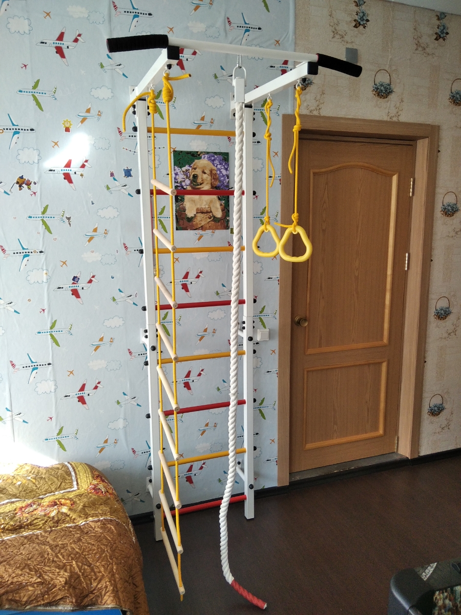 Шведская стенка(детская)+канат+кольца+лесенка деревянная. Качайтело