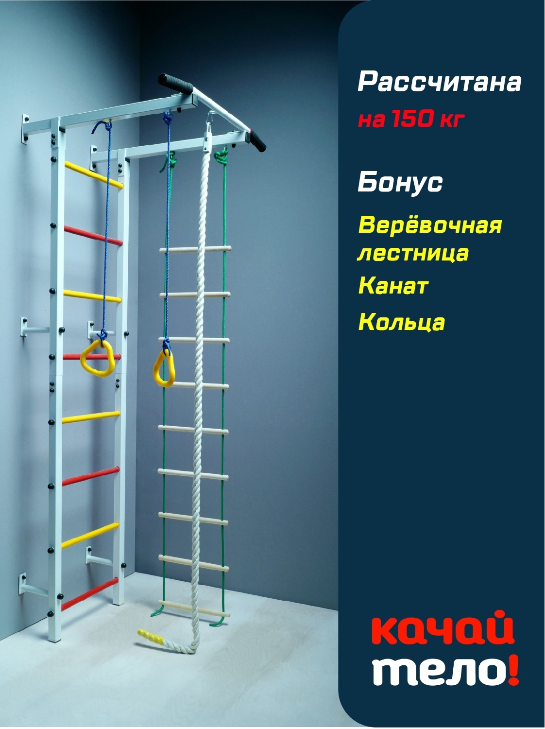 Шведская стенка+турник+канат+лестница+кольца. Спортивный комплекс для детей. Улучшенная. Качайтело